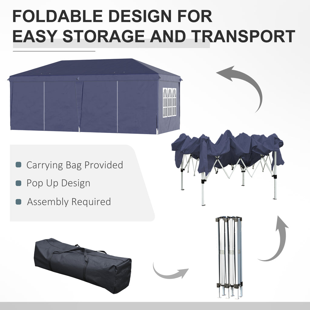 Gazebo Pieghevole da Giardino 5,85x2,95m in Acciaio e Tessuto Oxford Blu
