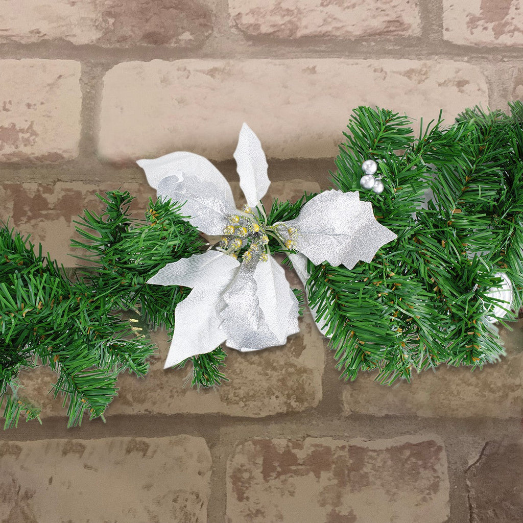 Guirlande de Noël Branche d'Arbre 2m avec Décorations de Houx et d'Argent