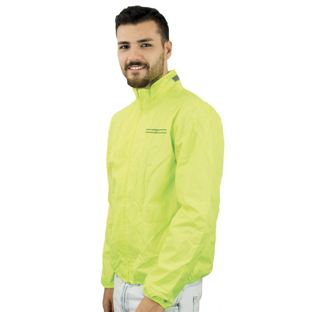 Veste de pluie en tissu synthétique imperméable avec doublure intérieure respirante jaune fluo haute visibilité. Excellent pour s'abriter de la pluie et du vent. Faible encombrement : pliable à l'intérieur de l'étui inclus, il se compacte jusqu'à la taille d'une main pour un rangement facile. Équipé d'une bande réfléchissante, de coutures scellées et d'une taille et de poignets élastiques.