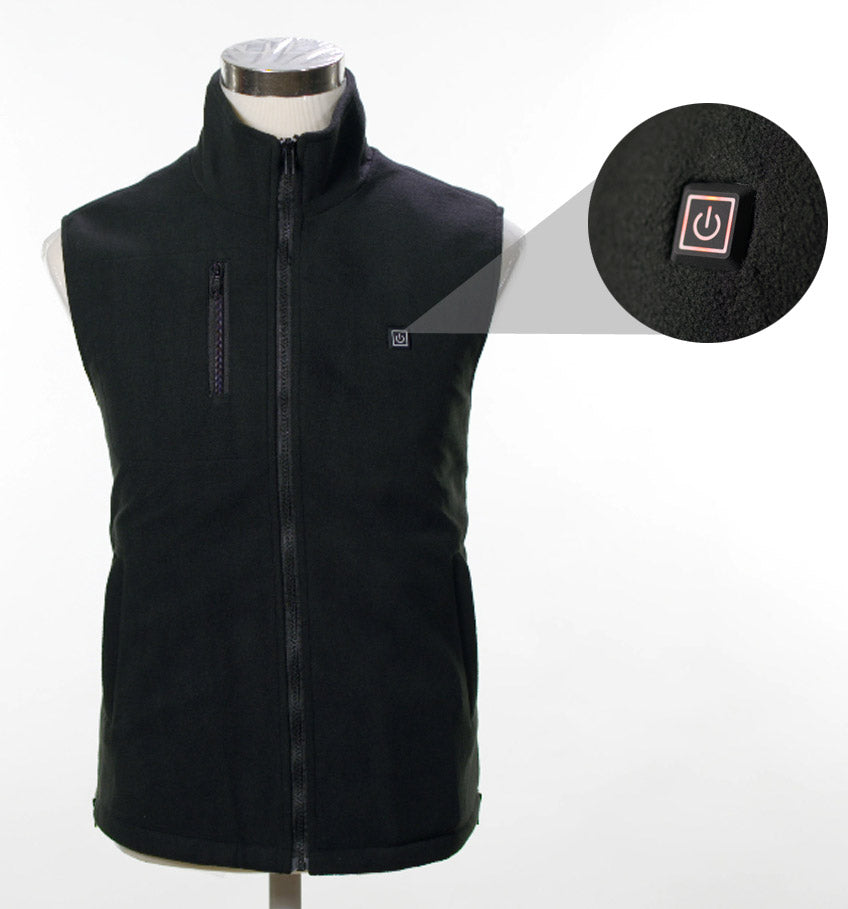 - Matériau : microfibre polaire (100 % polyester) avec couche intérieure coupe-vent ; système de chauffage à fibres composites