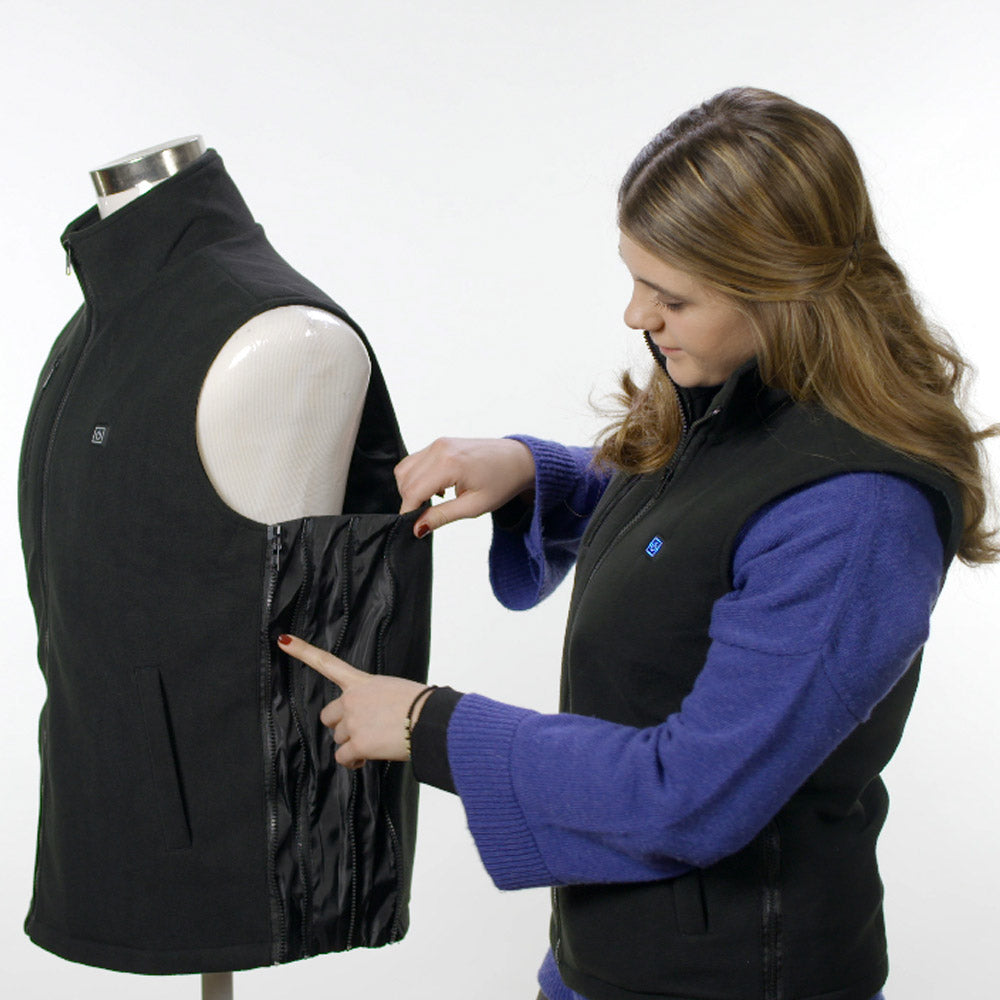 Il est conseillé de régler les zips latéraux de manière à maintenir le Gilet Chauffant près du corps pour profiter au maximum de la chaleur dégagée.