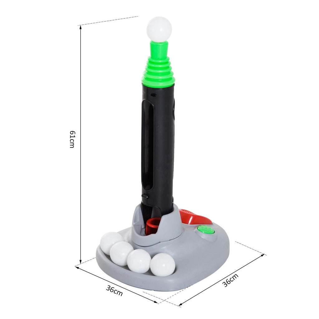 L'ensemble comprend un support de lancement qui peut être actionné via le bouton sur la base, une batte et 12 balles.