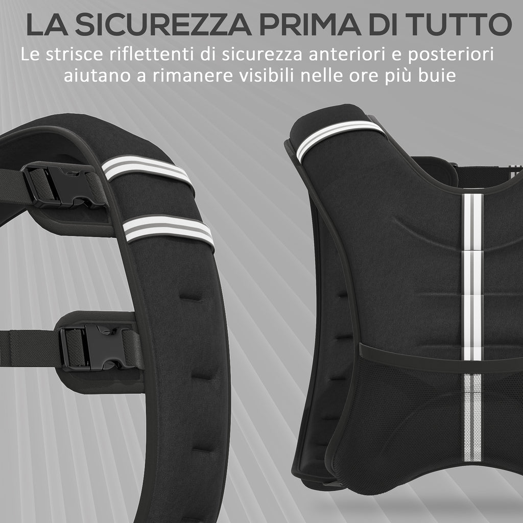 Giubbotto Zavorrato 8 kg Traspirante con Tasca Portaoggetti e Spallacci 40x35 cm in tessuto Oxford Nero