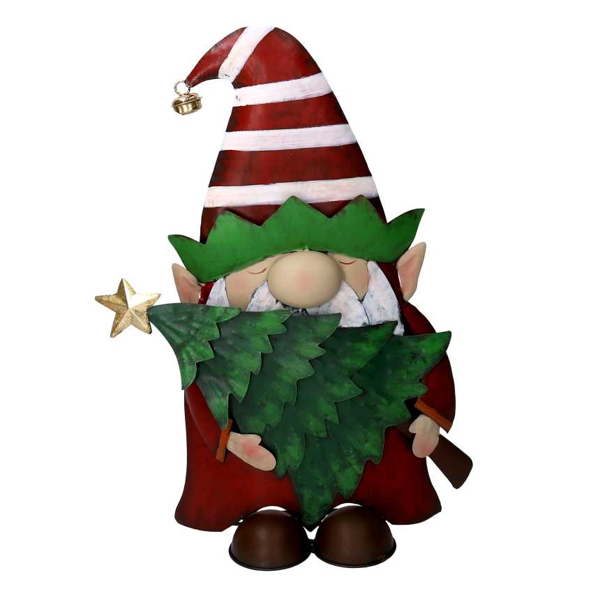 Gnomo metallo con albero rosso cm 35,5x11xh48