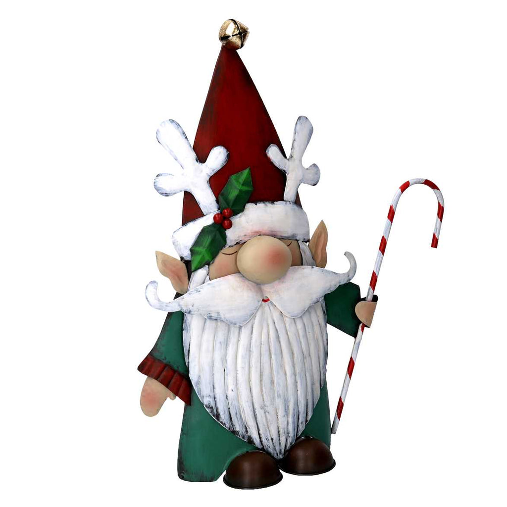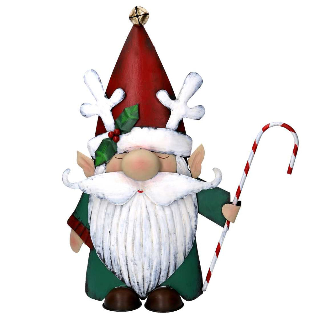 Gnomo metallo con bastoncino verde acqua cm 34,5x10xh43