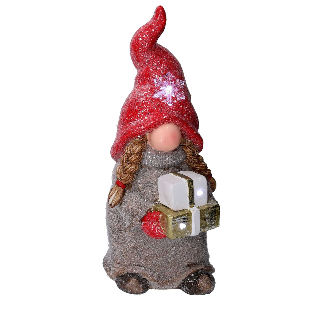 Gnomo resina con regali e led rosso cm 20x18,5xh43,5
