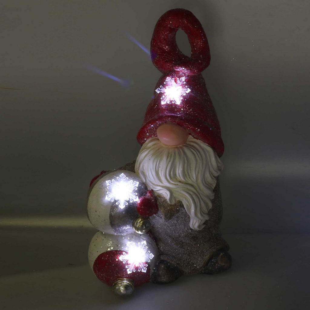 Gnomo resina con sfere e led rosso cm 23,5x17xh42