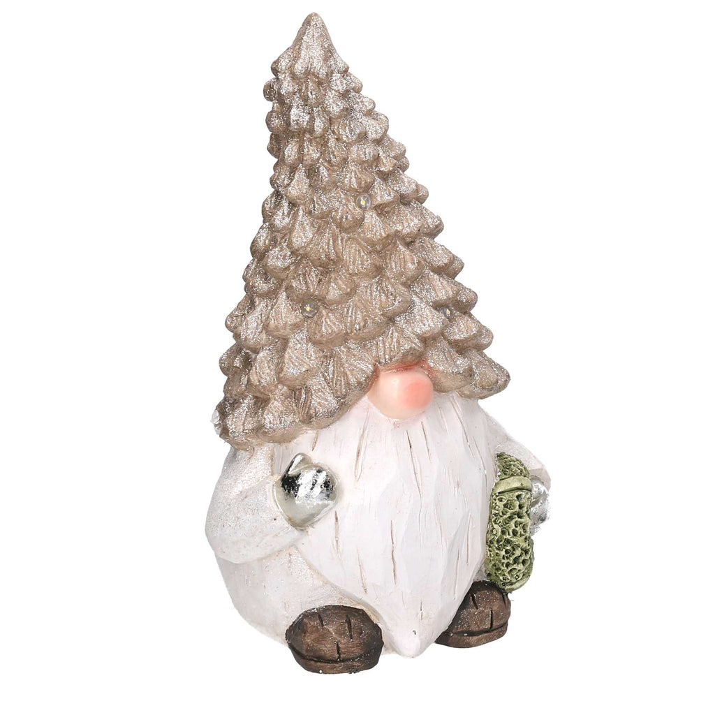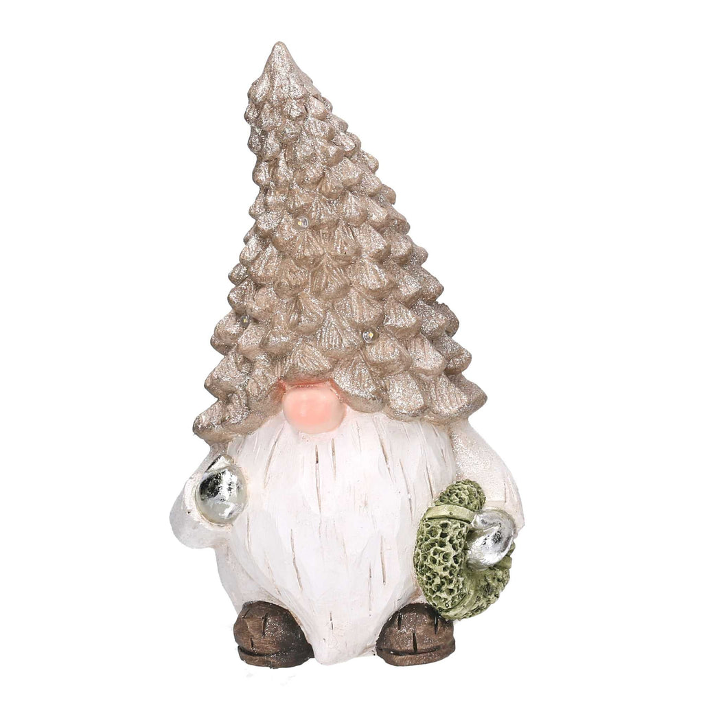 Gnomo resina grigio seduto con led cm Ø21,5xh36,5
