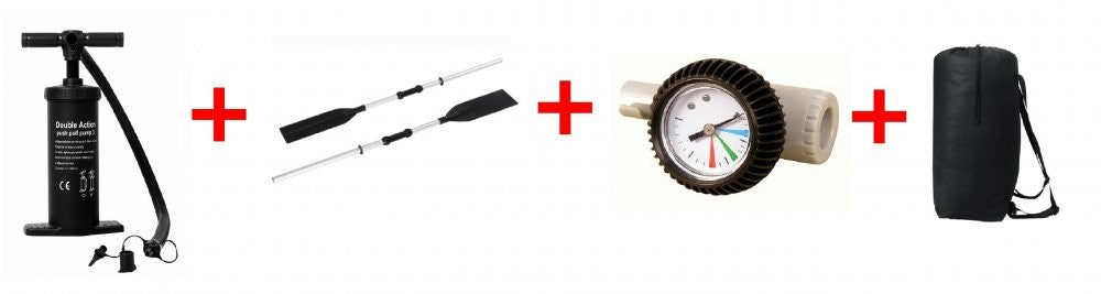 Paire de rames en aluminium, pompe double action, coussin gonflable et sac de transport inclus .