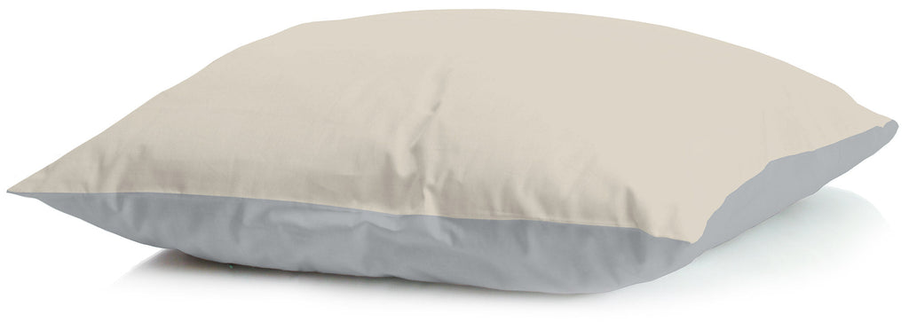 Oreiller en plumes d'oie avec taie d'oreiller double face crème/gris clair
