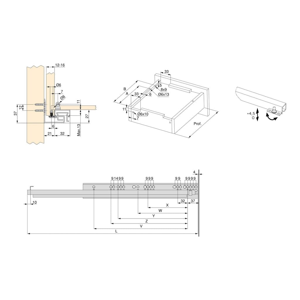 - Réglage vertical +4,5 mm.