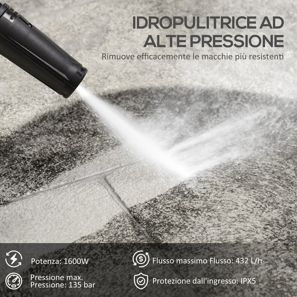 Il tuo spazio esterno si sporca facilmente e perde brillantezza? La tua auto è piena di fango e macchie resistenti? Scopri la nostra idropulitrice portatile. L'apparecchio si rivela potente e versatile, grazie a un motore da 1600 W, una pressione del getto di 130 bar e un flusso di 6.5L/min, in grado di eliminare anche le macchie più ostinate da tutte le superfici. Idropulitrice alta pressione con angolo dell'ugello regolabile da 0° a 75°. La nostra idropulitrice si avvia e si ferma automaticamente premendo o rilasciando il grilletto. Idropulitrice professionale dotata di supporti per la pistola a spruzzo, il tubo e il cavo di alimentazione per mantenerla organizzata. La maniglia e il supporto della pistola spruzzatrice sono rimovibili per ridurne le dimensioni. Idropulitrice ad alta pressione adatta per la pulizia di veicoli, pareti esterne, pavimenti di terrazze, mobili da esterno, recinzioni da giardino, ecc... Montaggio richiesto.