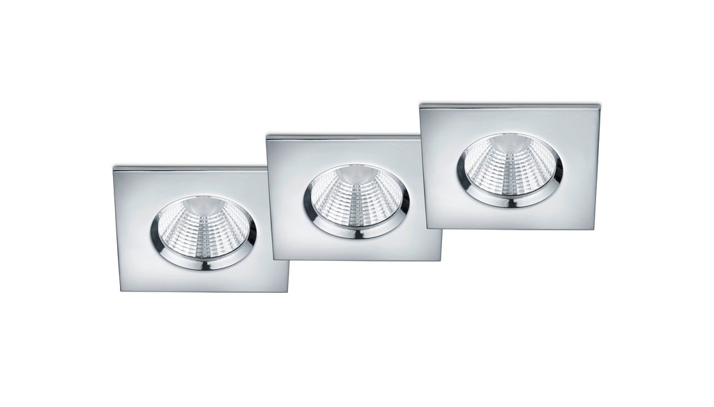 Zagros Kit 3 Spots Encastrables Led Carré Chromé Dimmable Ip65 8,5Cmx8,5Cm