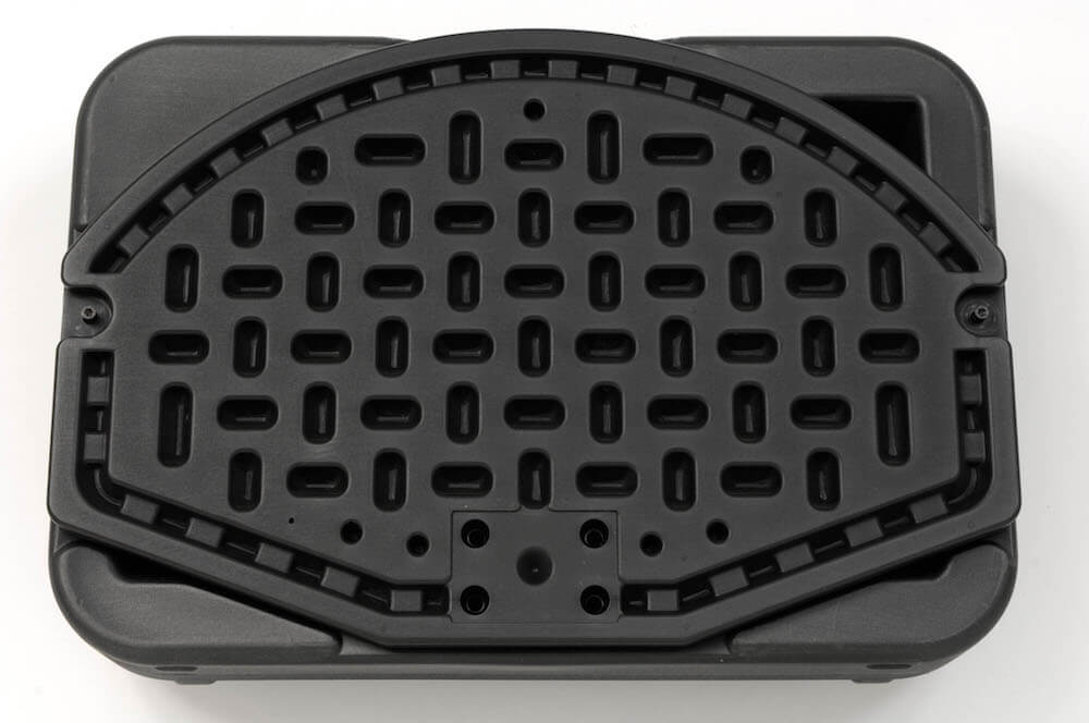Base en polyéthylène moulé noir, qui peut être remplie d'eau ou de sable pour assurer la stabilité pendant le jeu.