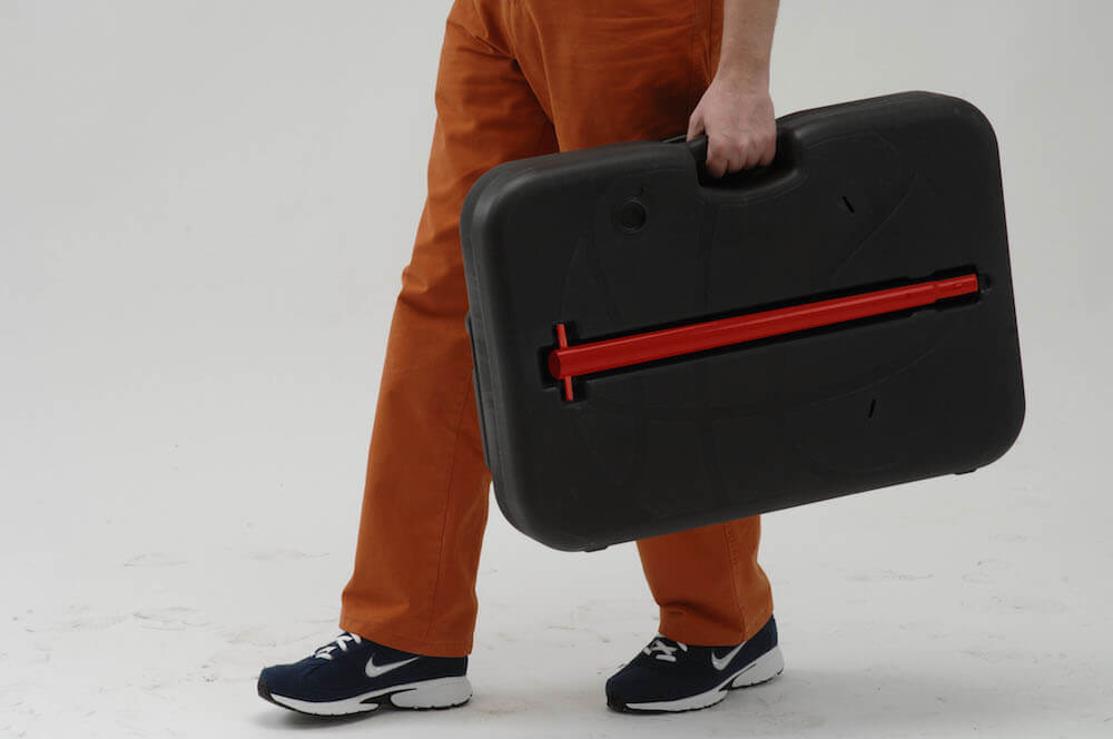 La base se transforme en une mallette pratique et peu encombrante pour ranger tous les composants.
