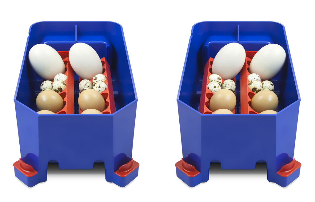 REMARQUE : la position verticale des œufs pendant l'incubation est la même que celle utilisée dans les couvoirs industriels de dernière génération. Il garantit toujours des pourcentages d'éclosion nettement plus élevés par rapport aux œufs incubés horizontalement dans d'anciens incubateurs, désormais technologiquement dépassés.