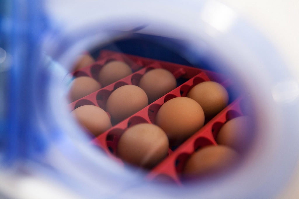 REMARQUE : la position verticale des œufs pendant l'incubation est la même que celle utilisée dans les couvoirs industriels de dernière génération. Il garantit toujours des pourcentages d'éclosion nettement plus élevés par rapport aux œufs incubés horizontalement dans d'anciens incubateurs, désormais technologiquement dépassés.
