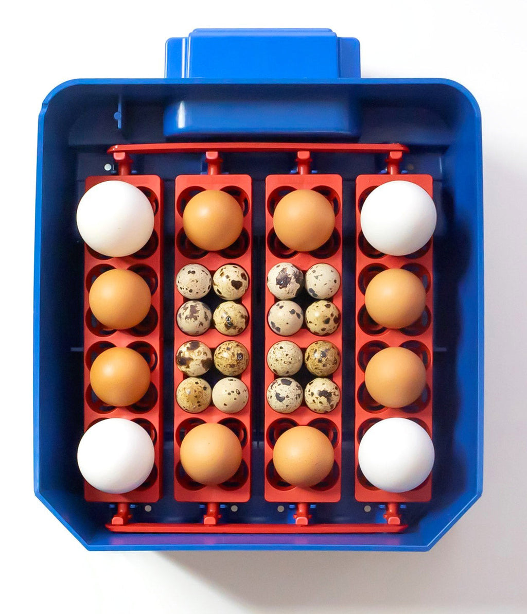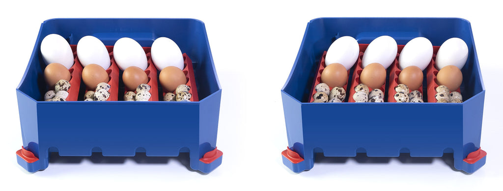 REMARQUE : la position verticale des œufs pendant l'incubation est la même que celle utilisée dans les couvoirs industriels de dernière génération. Il garantit toujours des pourcentages d'éclosion nettement plus élevés par rapport aux œufs incubés horizontalement dans d'anciens incubateurs, désormais technologiquement dépassés.