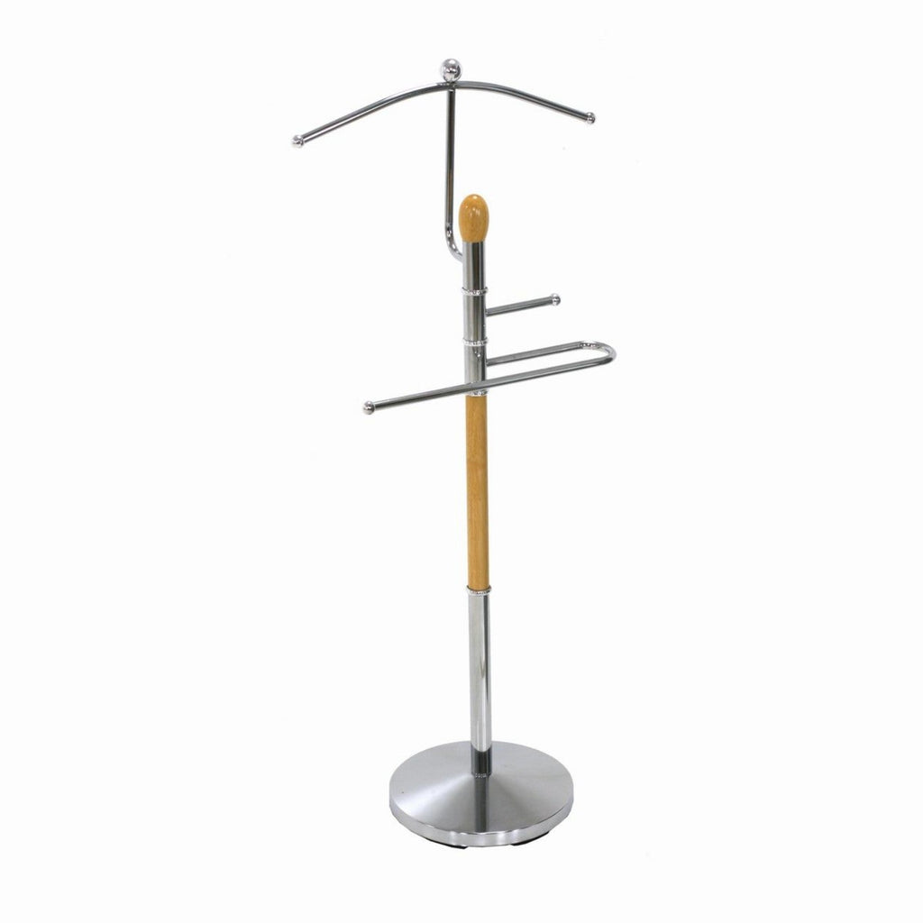Valet de nuit avec tige en acier chromé et bois cm28X48H108