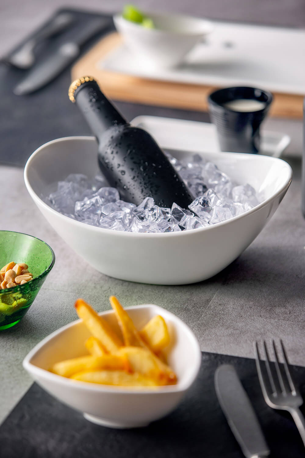 Aluxina est une collection de 27 produits en porcelaine d'aluminium ultrarésistant inspirés du monde professionnel des chefs et des cuisines les plus innovantes. Le but de la série est de créer un assortiment d'accessoires inspirés des tables professionnelles en termes de matériaux et de formes. En effet, nous utilisons une porcelaine composée à 30 % d'aluminium qui est ultra résistante aux éclats et aux rayures même des couverts professionnels, résistante au lavage dans les lave-vaisselle professionnels et adaptée aux fours à micro-ondes. La ligne est composée de produits polyvalents et complémentaires pour s'adapter à la mise en place des restaurants qui n'utilisent plus le service classique haut/bas et fruits mais associent un plat à chaque plat.