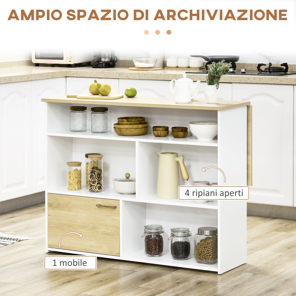 Isola da Cucina con Piano a Ribalta 116x79,5x91 cm in MDF Bianco e Legno Naturale