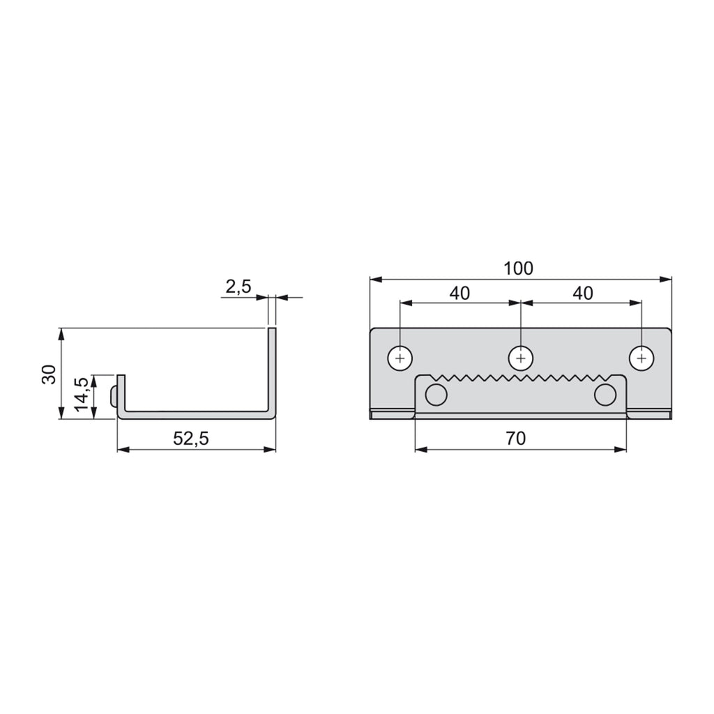 Le mécanisme est en acier inoxydable et comprend deux patins de protection en caoutchouc, un autocollant d'avertissement et des instructions de montage .