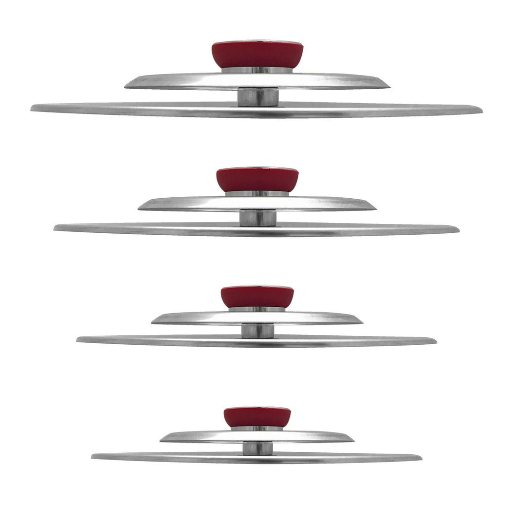 Kit de 4 Couvercles Magiques Anti-odeur Ventur Magic Ø25, Ø27, Ø31, Ø35 cm Cuisinière en Inox Bouton Rouge