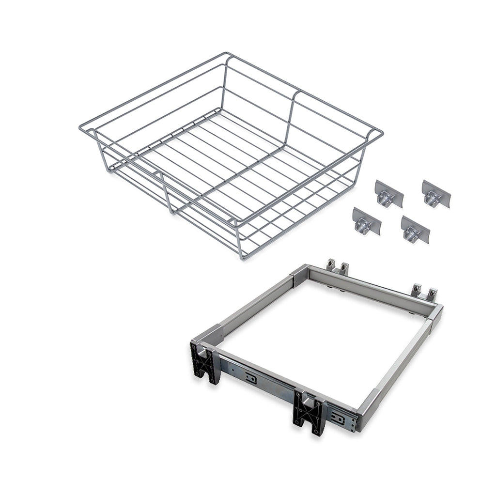 - Kit composé d'un tiroir métallique de largeur 743 mm et d'un cadre de guidage réglable en largeur.