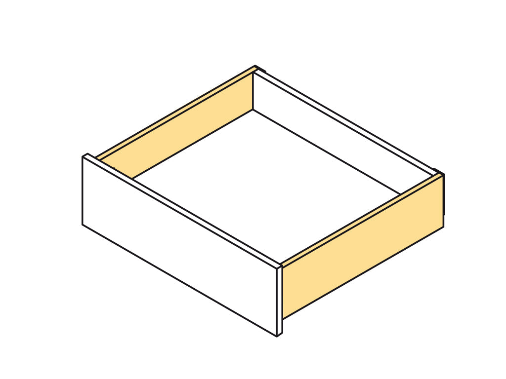 - Kit d'accessoires nécessaires au montage du tiroir extérieur d'une hauteur de 138 mm et d'une profondeur de 500 mm, à l'exception de la façade, de l'arrière et du fond.