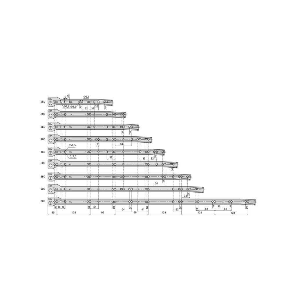 Guides à roulettes, avec chute pour tiroirs en acier avec finitions blanc, noir ou gris métallisé . Chaque ensemble de guides est emballé individuellement. Le montage sous le tiroir peut se faire avec un trou de diamètre 5 (avec une vis Euro de diamètre 6,2 à tête plate) ou directement vissé sur le meuble (avec une vis de diamètre 3,5 à tête plate).Fermeture avec chute et capacité de charge jusqu'à 20 kg par lot. Avec possibilité d'ajouter une fermeture souple (non incluse).