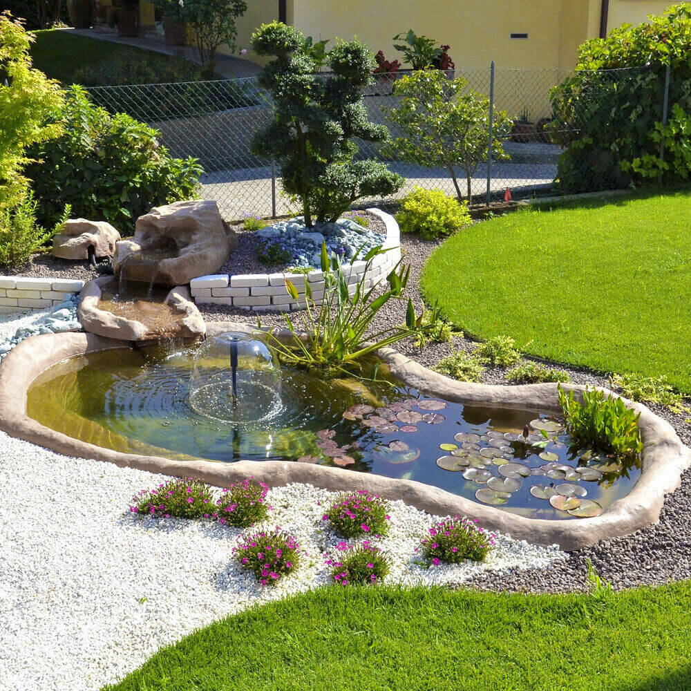 Si vous le souhaitez, vous pouvez personnaliser votre bassin en insérant des roches de source pour créer un effet de cascade, des lumières et des pièces d'eau, ainsi que des poissons et des plantes aquatiques. De cette façon, vous aurez créé un étang vraiment unique et merveilleux. Nous suggérons toujours l'utilisation d'une pompe et d'un filtre avec une lampe UV, pour toujours avoir de l'eau claire.