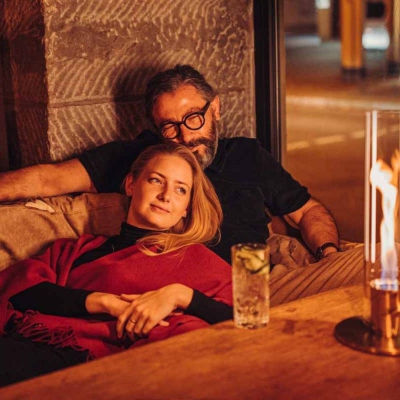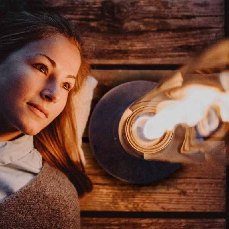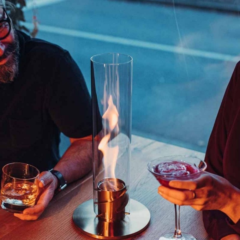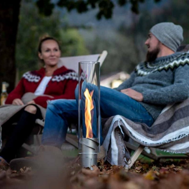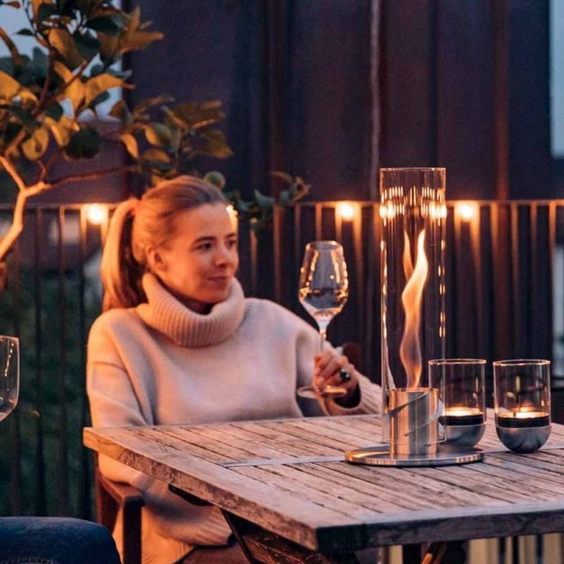 La lampe de table au bioéthanol renferme un fascinant tourbillon de flammes dans un cylindre de verre décoratif qui évoque l'atmosphère d'un feu de joie sur le balcon et la terrasse. Son design confère au produit une esthétique de premier ordre et une fonctionnalité unique et ingénieuse. Le beau jeu de flammes provient du bioéthanol qui alimente la lampe, fournissant ainsi lumière et chaleur pendant une heure et demie.