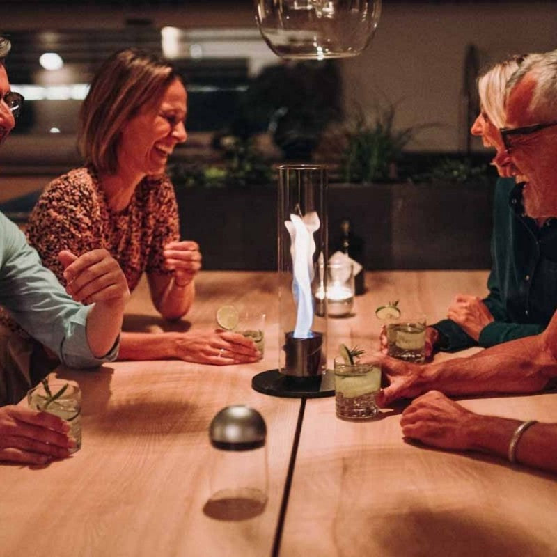 La lampe de table au bioéthanol renferme un fascinant tourbillon de flammes dans un cylindre de verre décoratif qui évoque l'atmosphère d'un feu de joie sur le balcon et la terrasse. Son design confère au produit une esthétique de premier ordre et une fonctionnalité unique et ingénieuse. Le beau jeu de flammes provient du bioéthanol qui alimente la lampe, fournissant ainsi lumière et chaleur pendant une heure et demie.