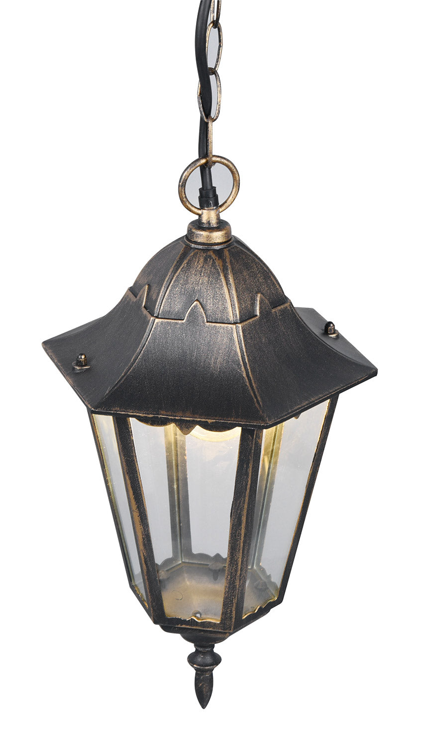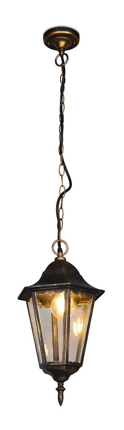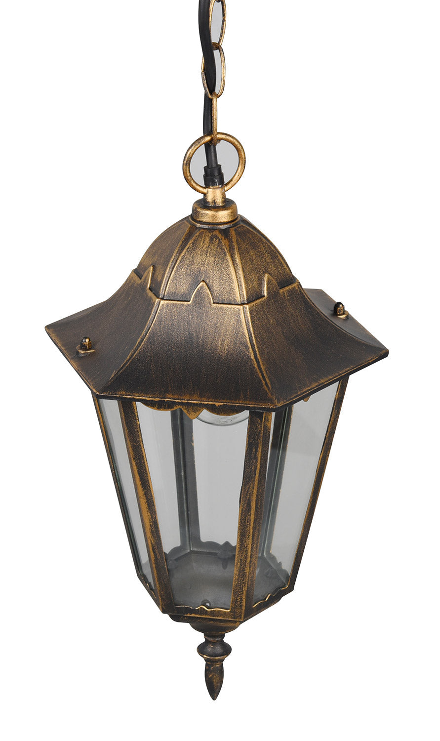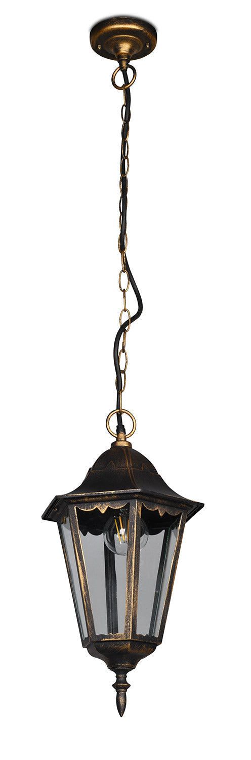Mella Sospensione Da Esterno 6 Lati Fusione di Alluminio Ruggine e Vetro Trasparente H. 83Cm Ip44