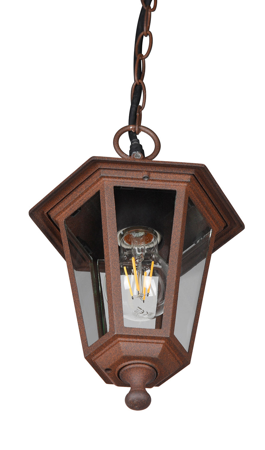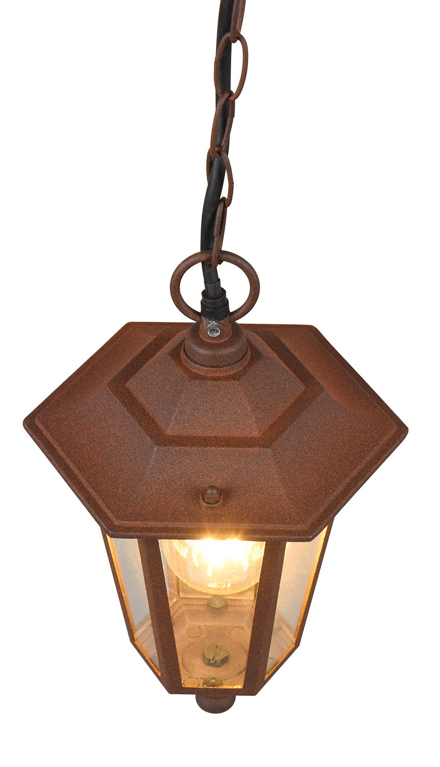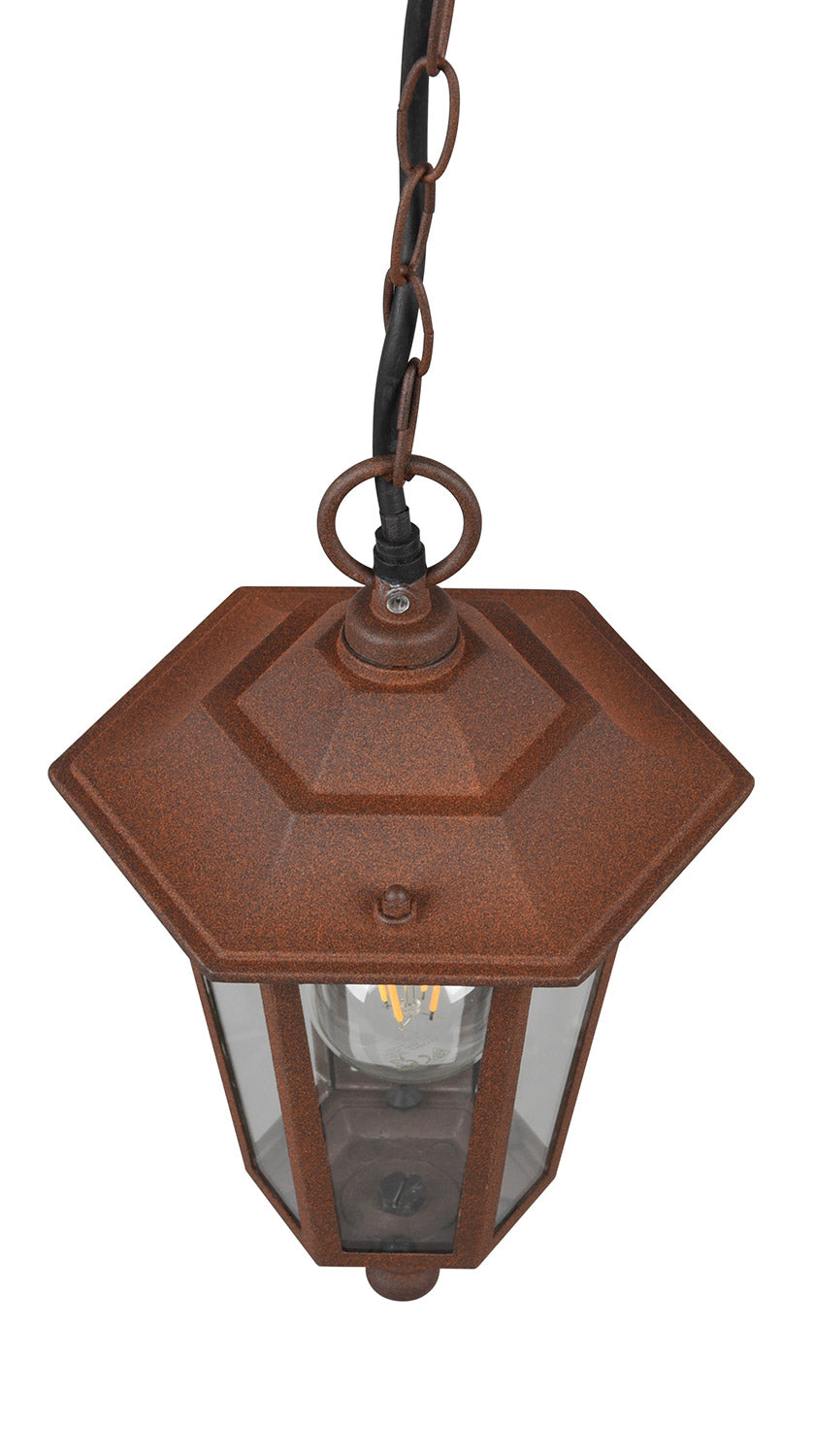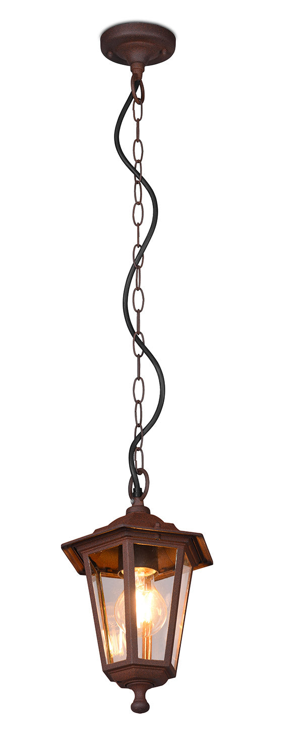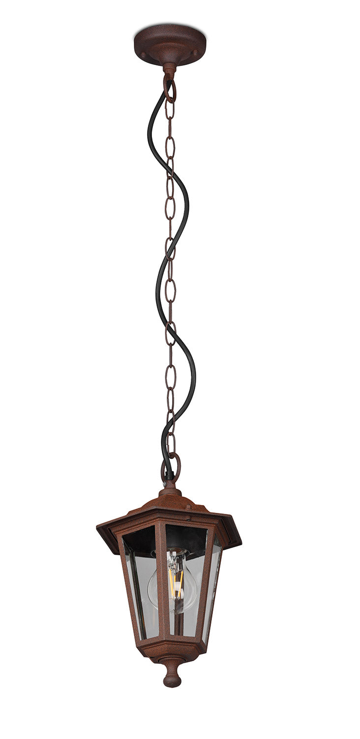 Pienza Sospensione Da Esterno 6 Lati Fusione di Alluminio Ruggine e Vetro Trasparente H. 83Cm Ip44