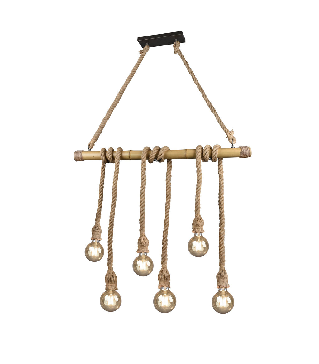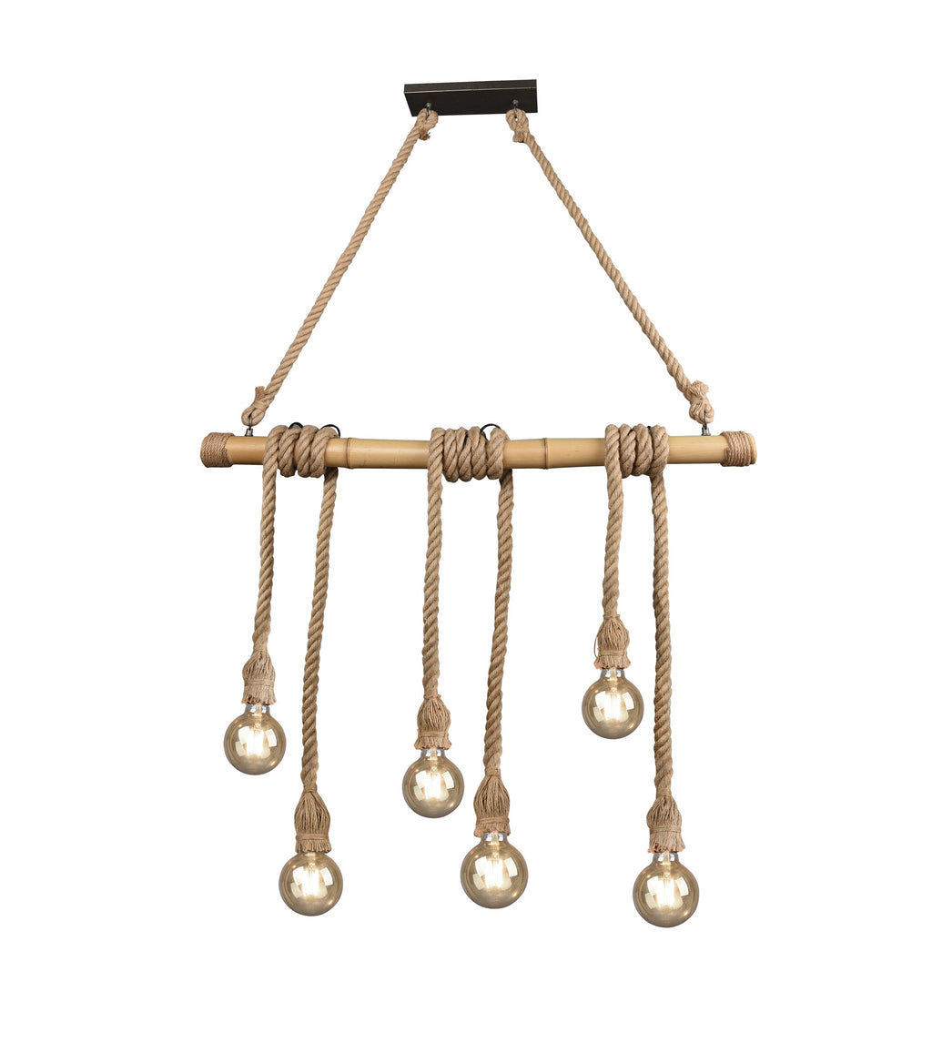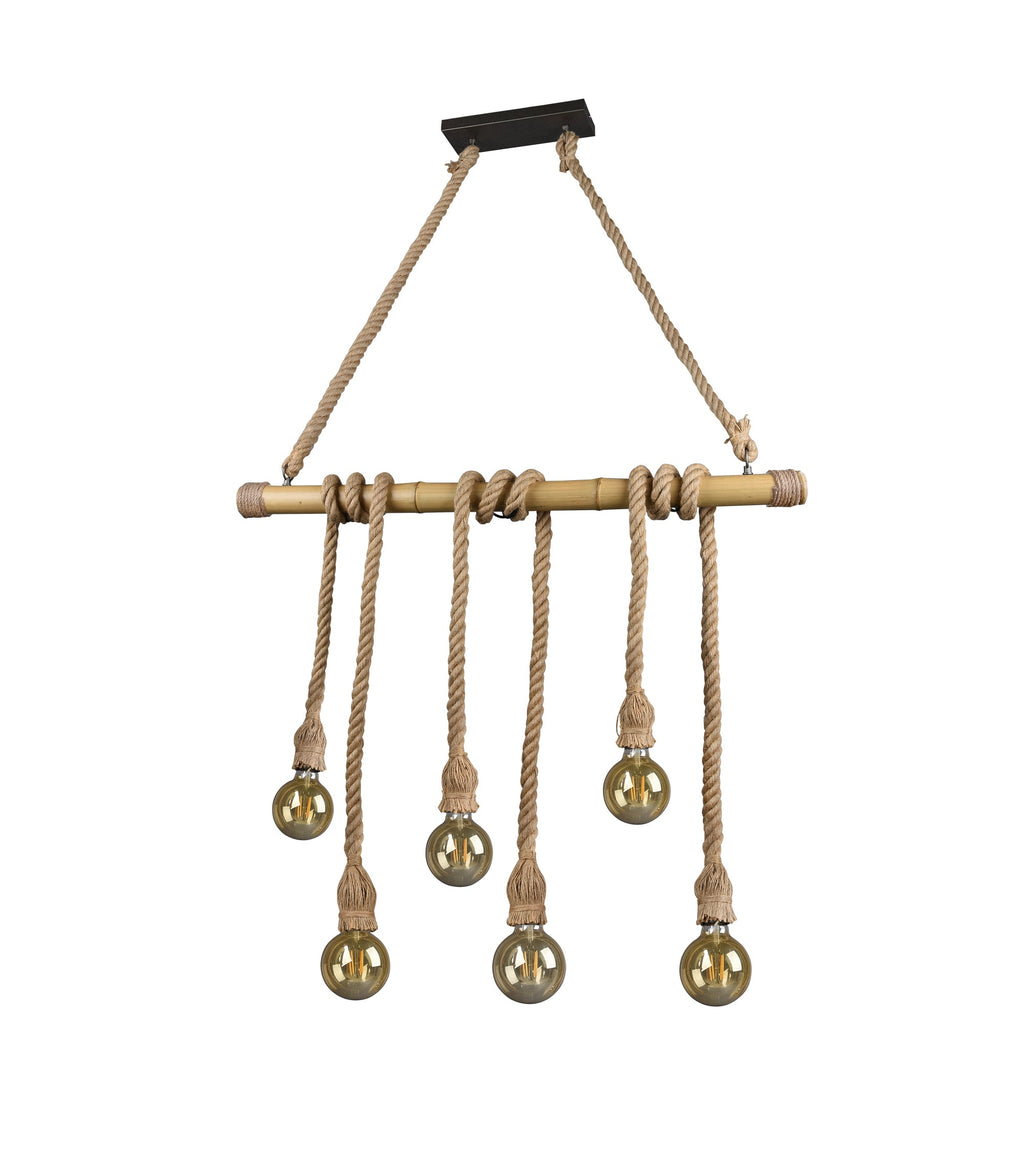 Wilma Suspension Barre Bambou' Avec Cordes 6 Lumières L. 100Cm