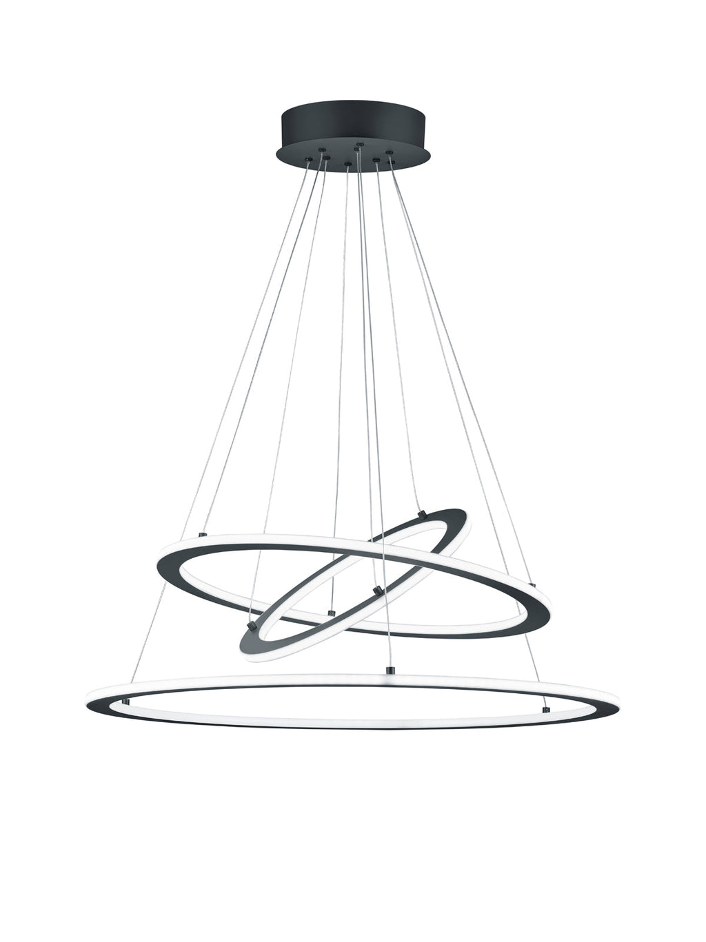 Durban Suspension Led Triple Anneau Anthracite Intensité Réglable Mousqueton D. 80Cm