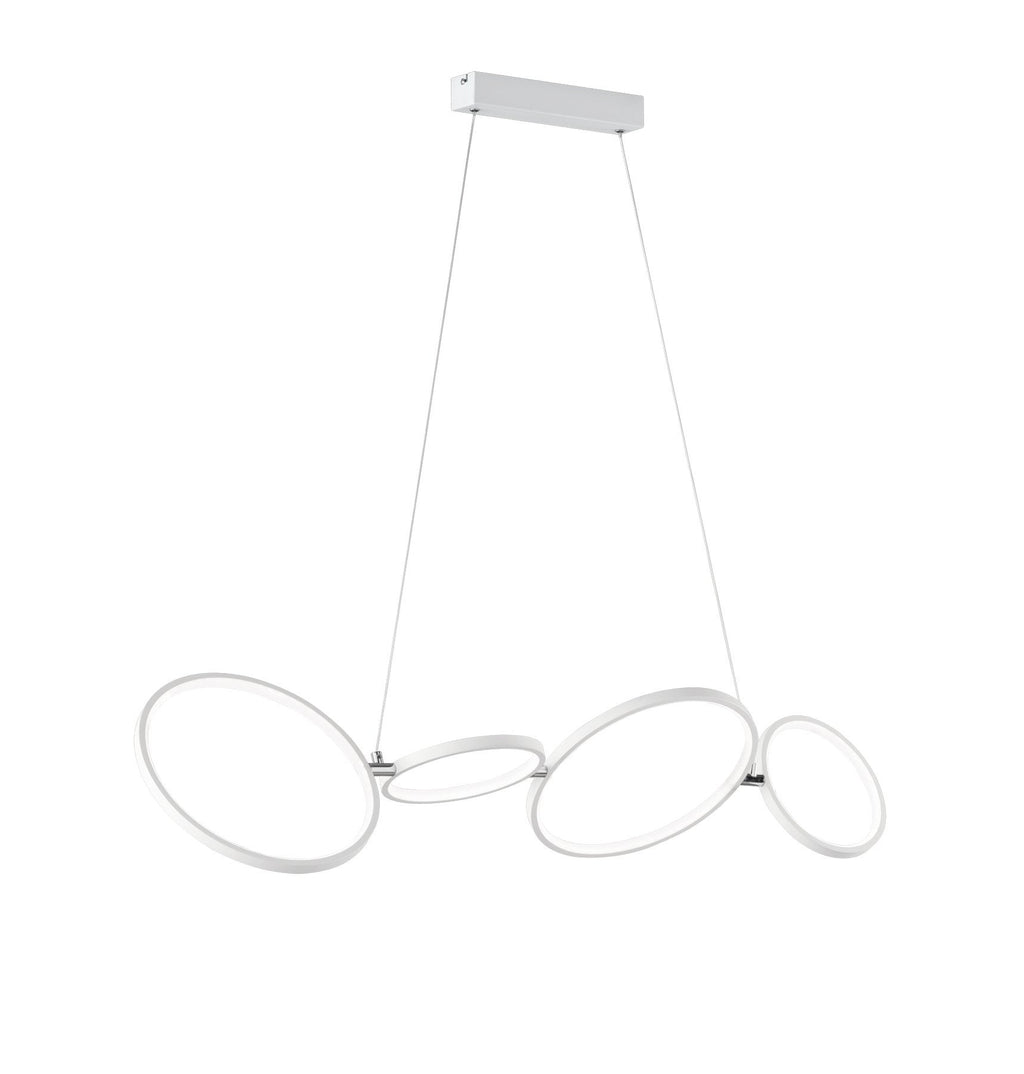 Rondo Suspension Led 4 Cercles En Métal Blanc Mat À Variation D'intensité Avec Interrupteur Mural L. 110Cm