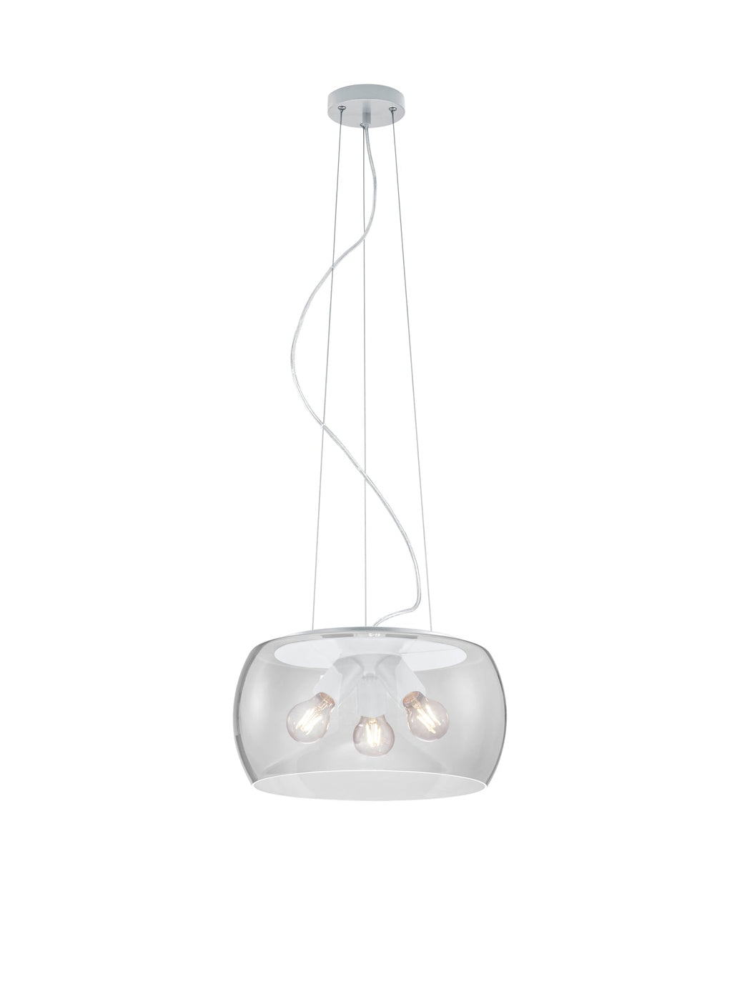 Valente Suspension Large Verre Transparent Et Métal Blanc 3 Lumières D. 40Cm