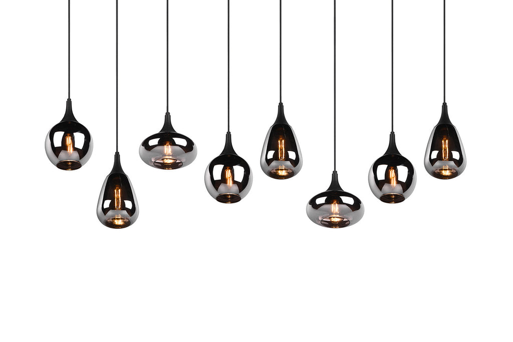 Lumina Sospensione Rettangolare Metallo Nero con 6 Diffusori di Vetro Fume' Cromato in Forme Differenti L. 115Cm