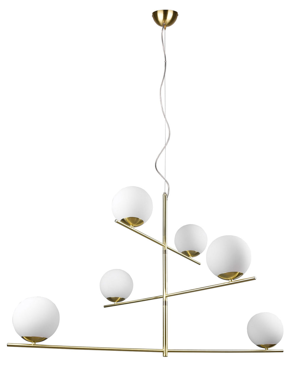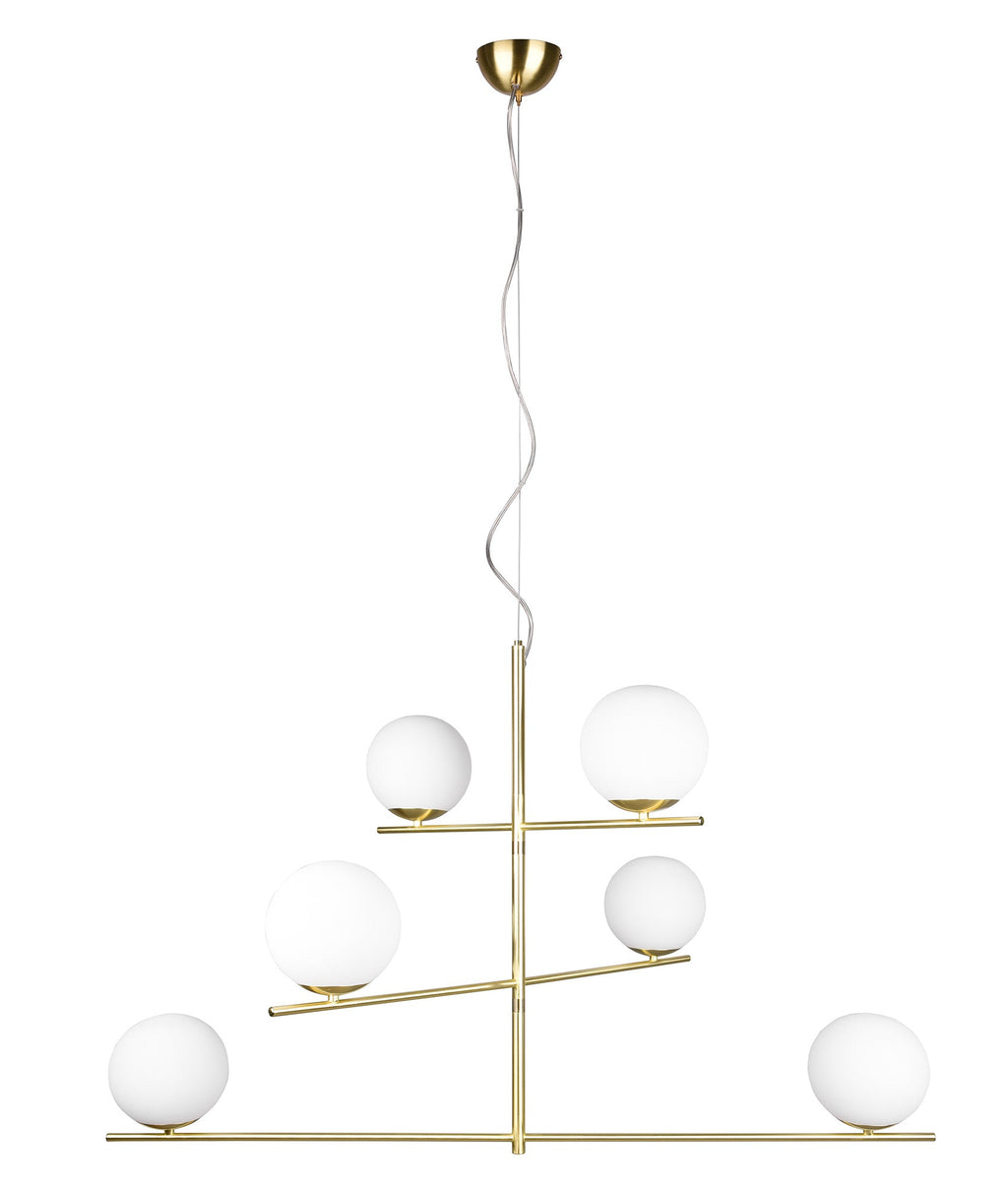 Pure Sospensione Girevole Metallo Colore Ottone Opaco con 6 Sfere Bianche D. 115Cm