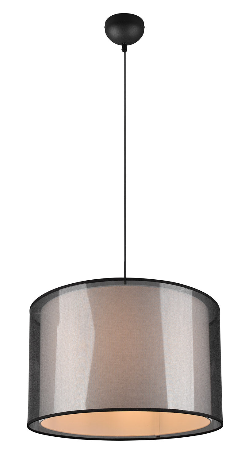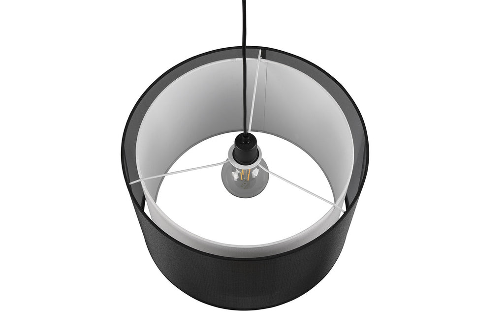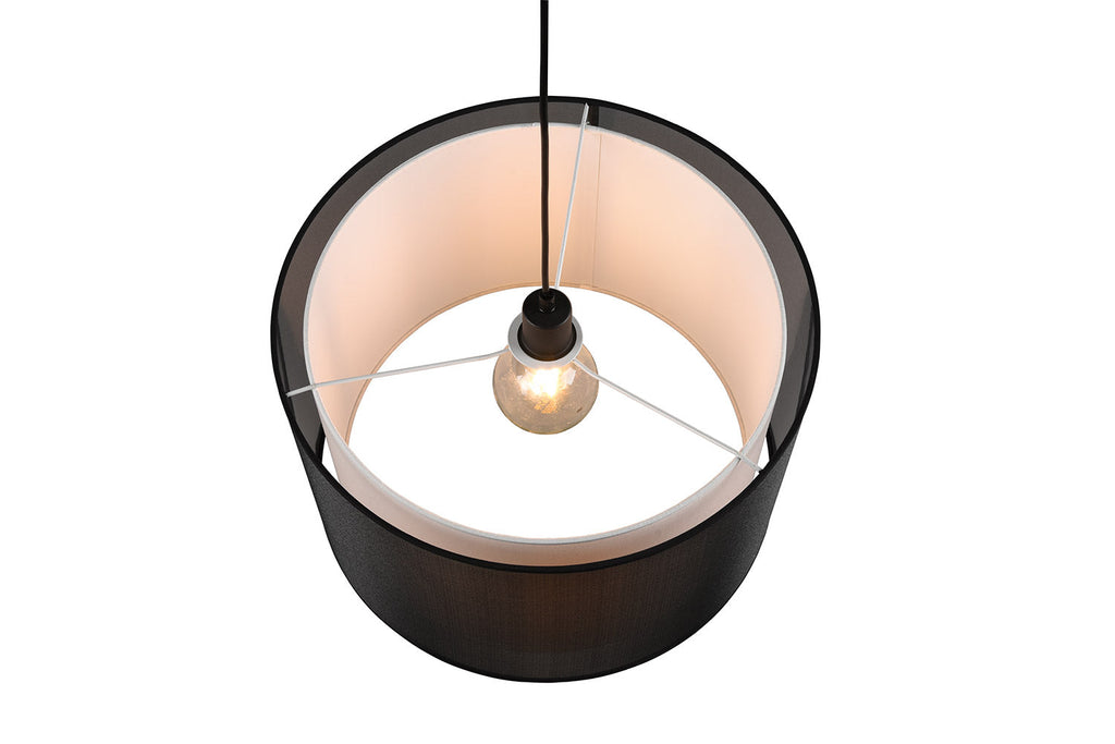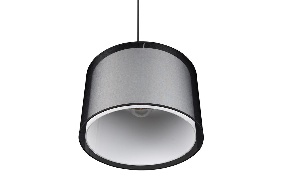 Burton Sospensione Metallo Nero Paralume Bianco e Diffusore Esterno Traforato Nero D. 45Cm
