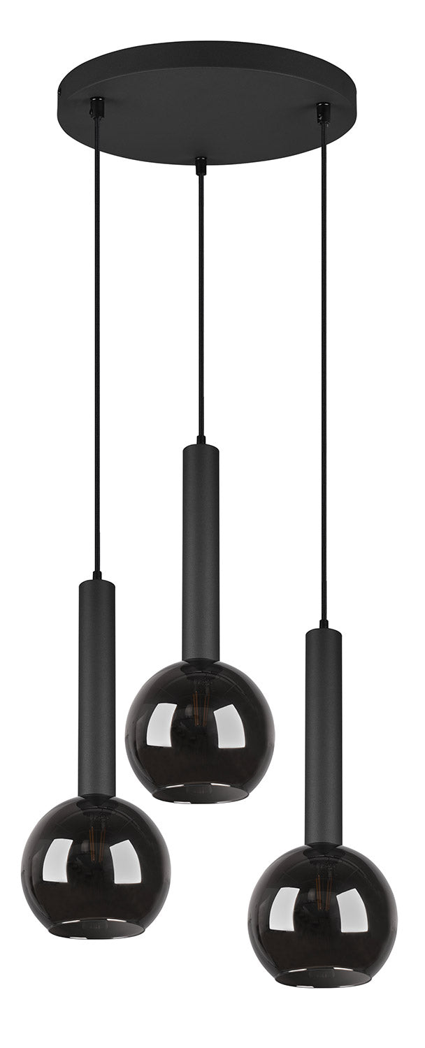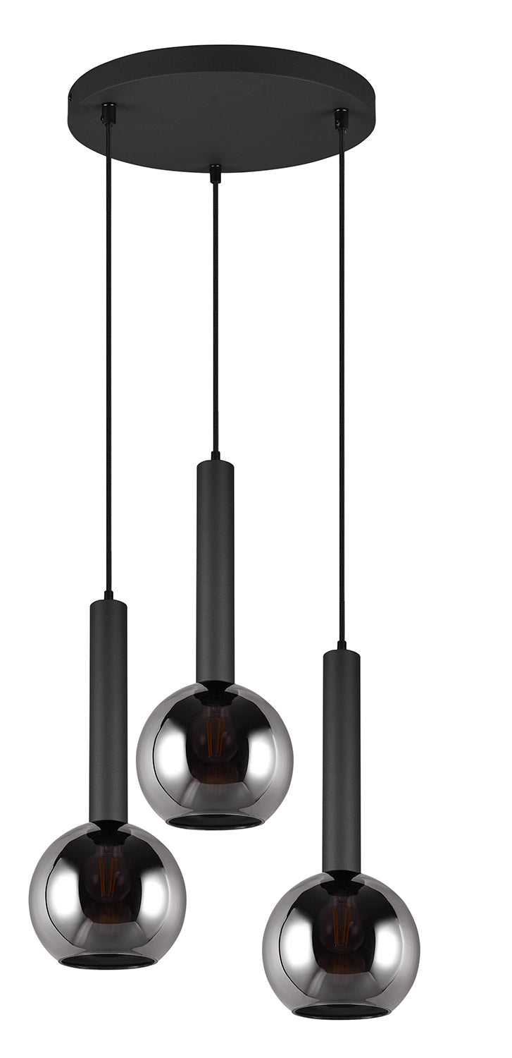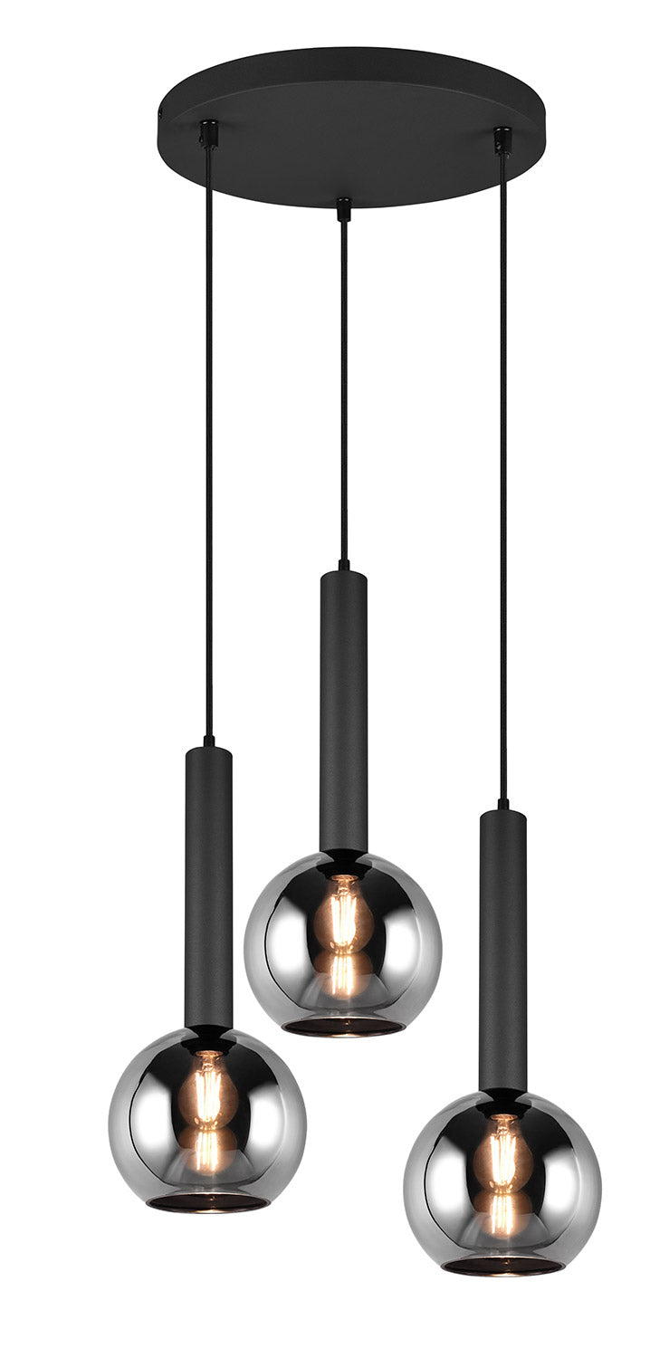 Clayton Sospensione Metallo Nero con 3 Vetri Fume' Cromato D. 45Cm