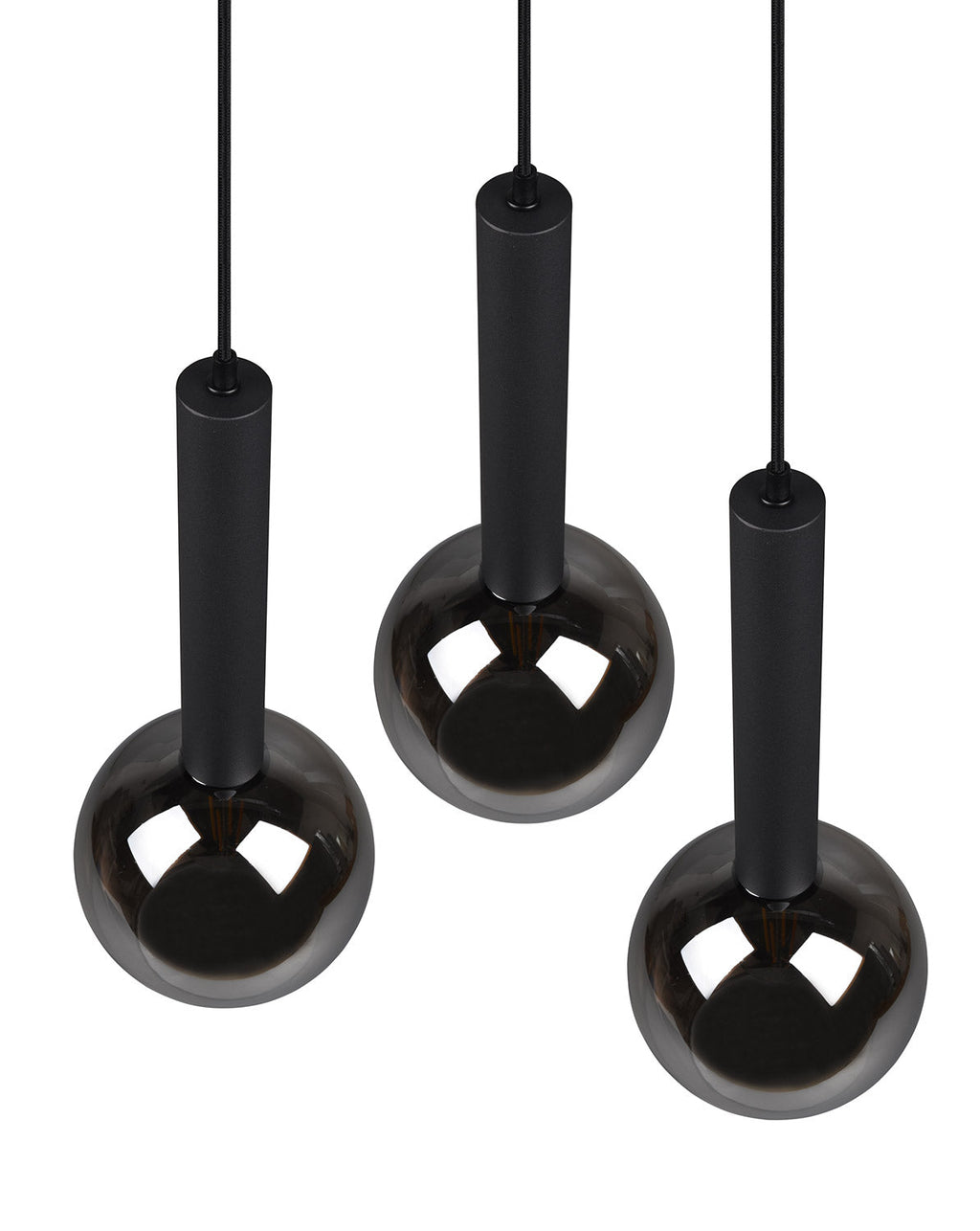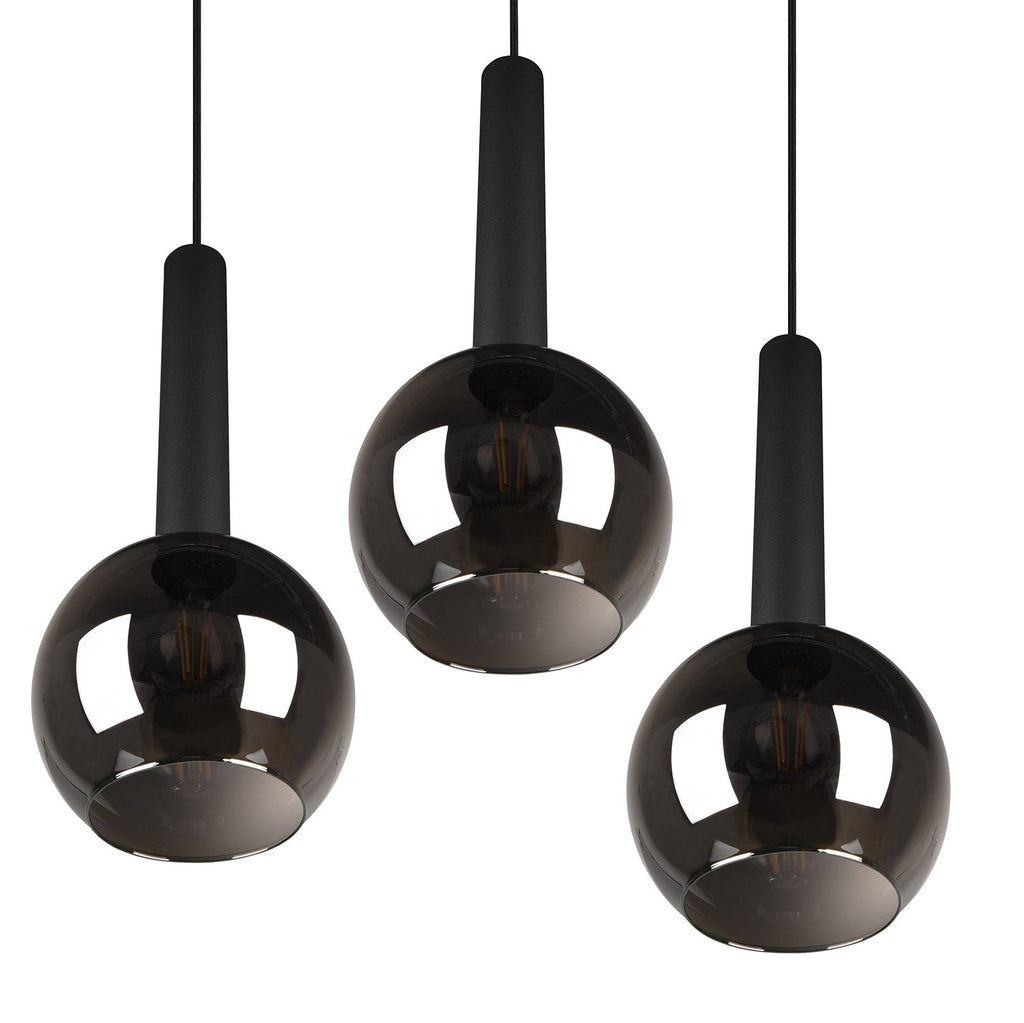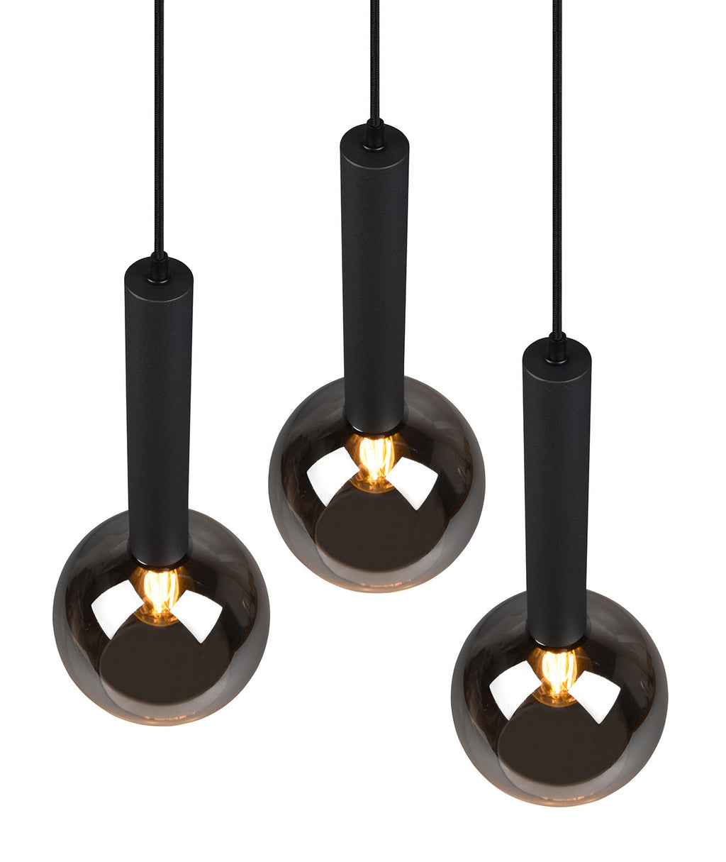Clayton Sospensione Metallo Nero con 3 Vetri Fume' Cromato D. 45Cm