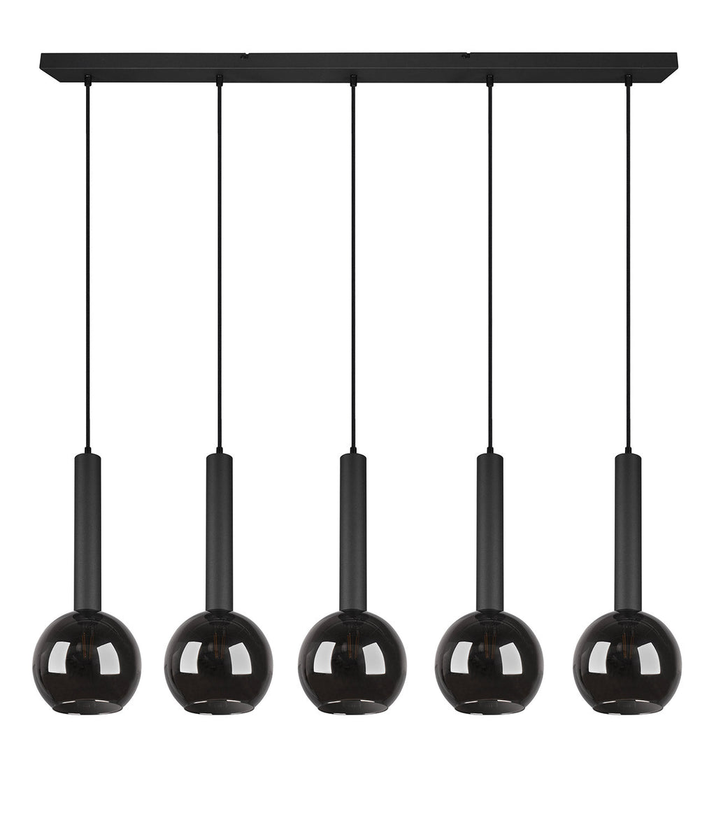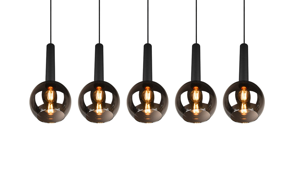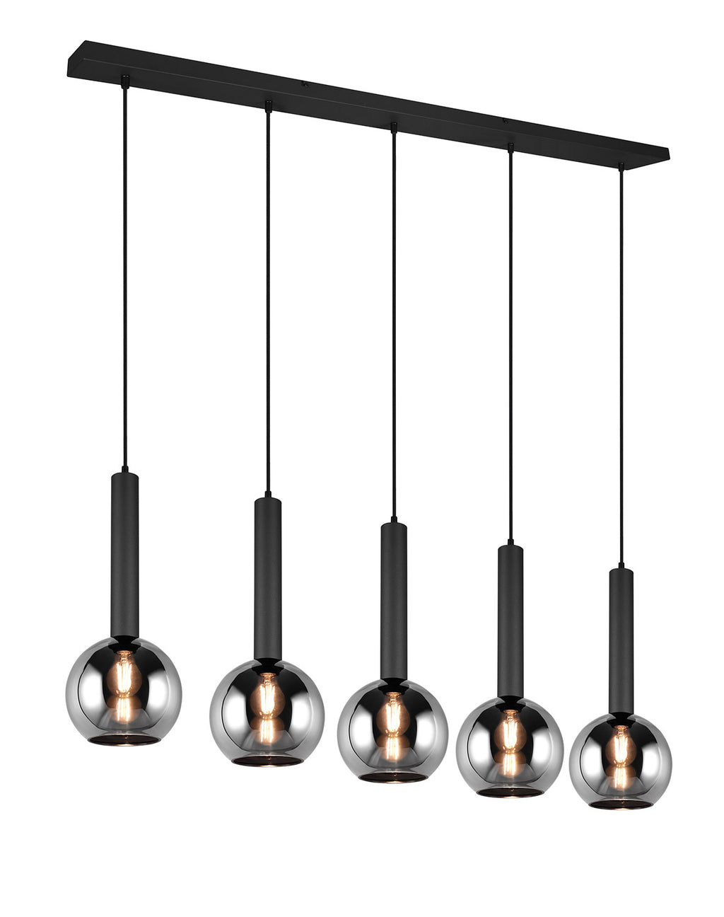 Clayton Sospensione Metallo Nero con 5 Vetri Fume' Cromato L. 115Cm