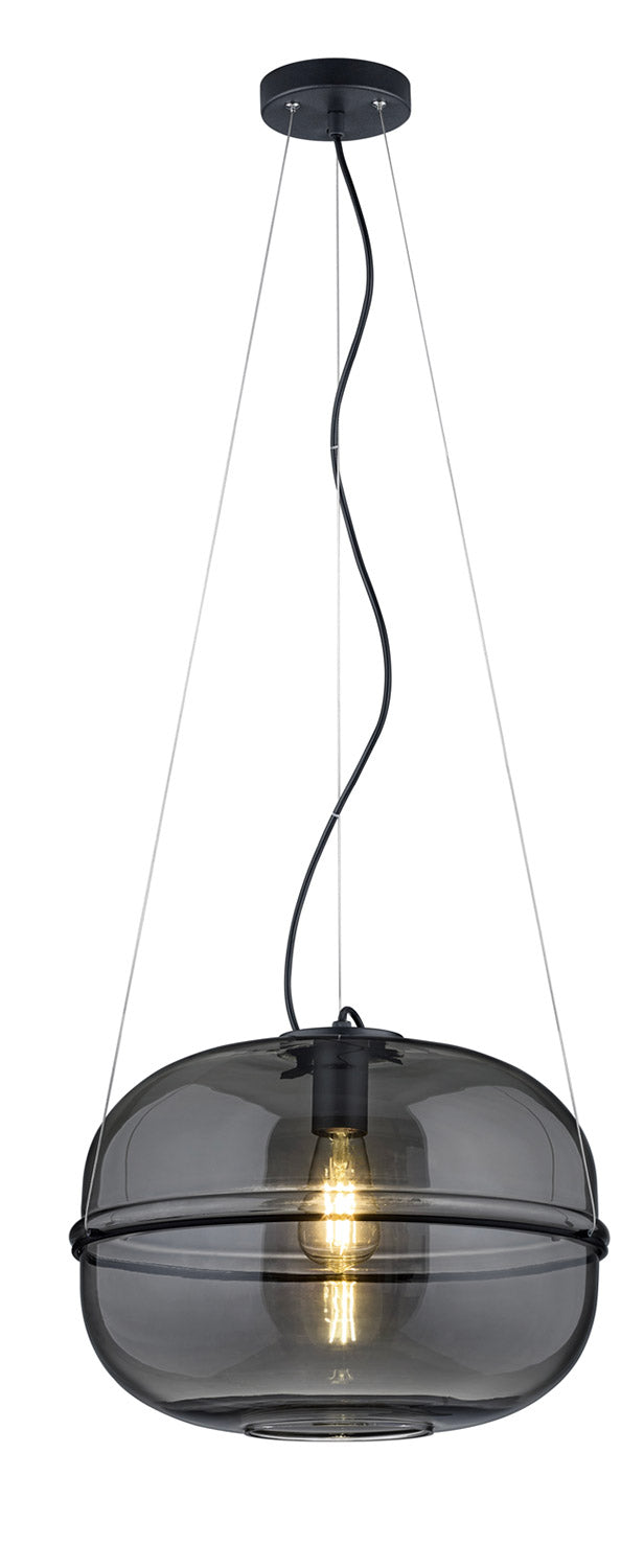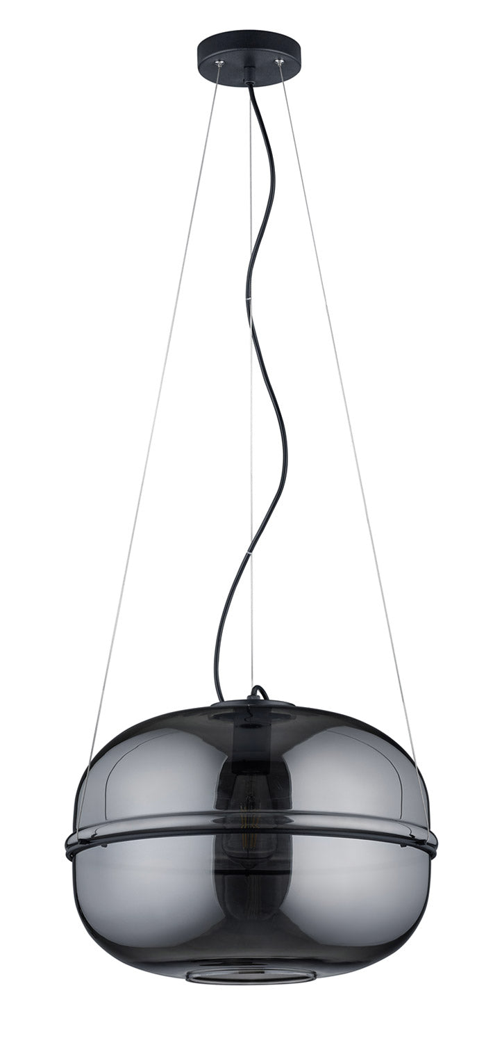 Lorena Sospensione Metallo Nero Vetro Fume' Cromato D. 40Cm