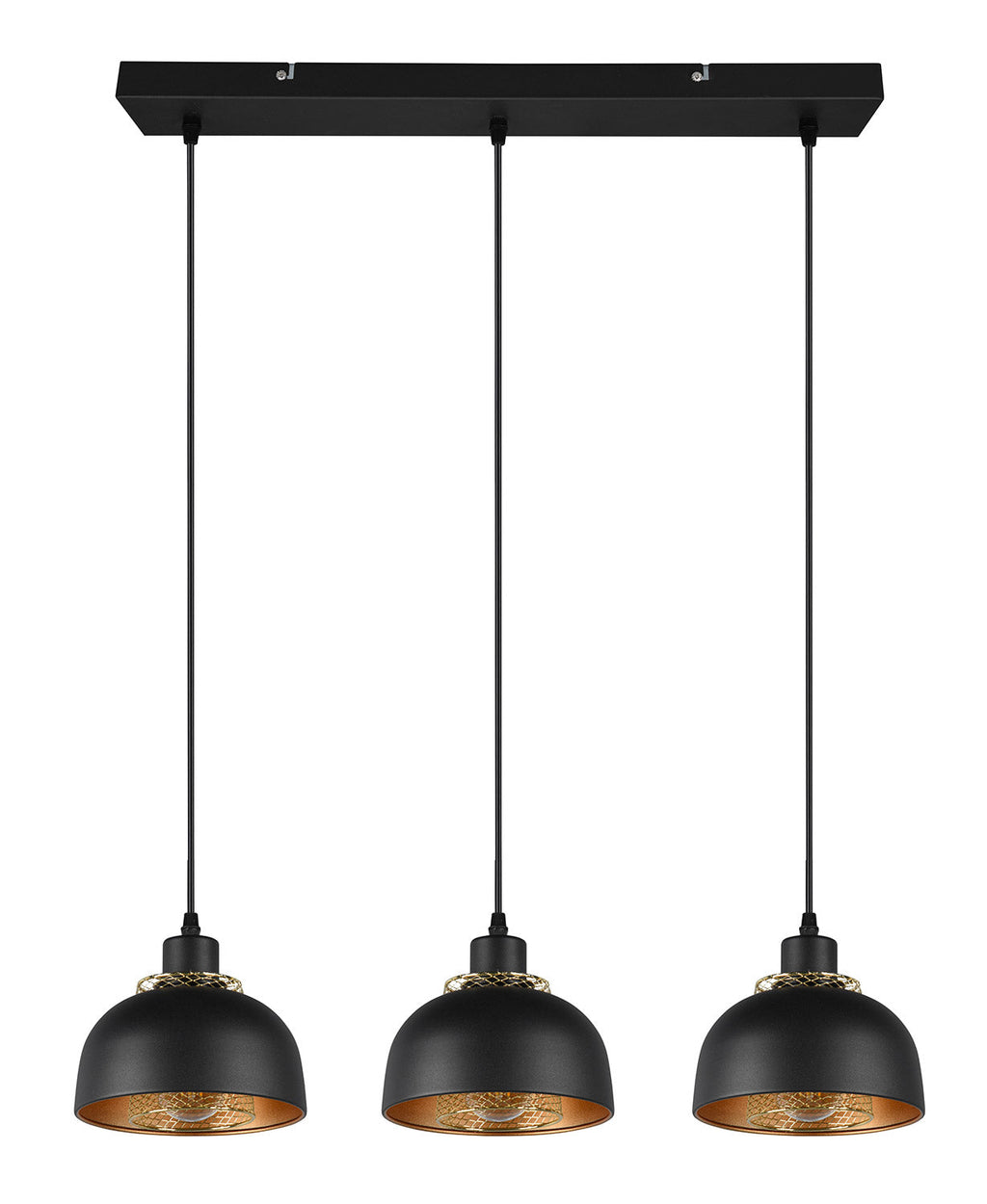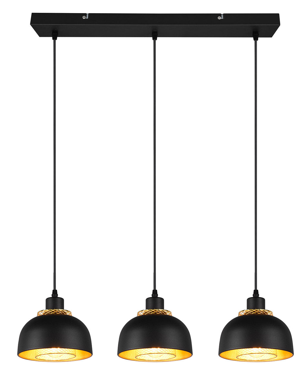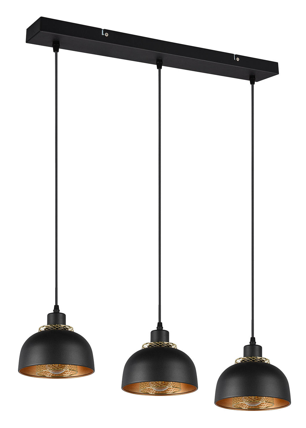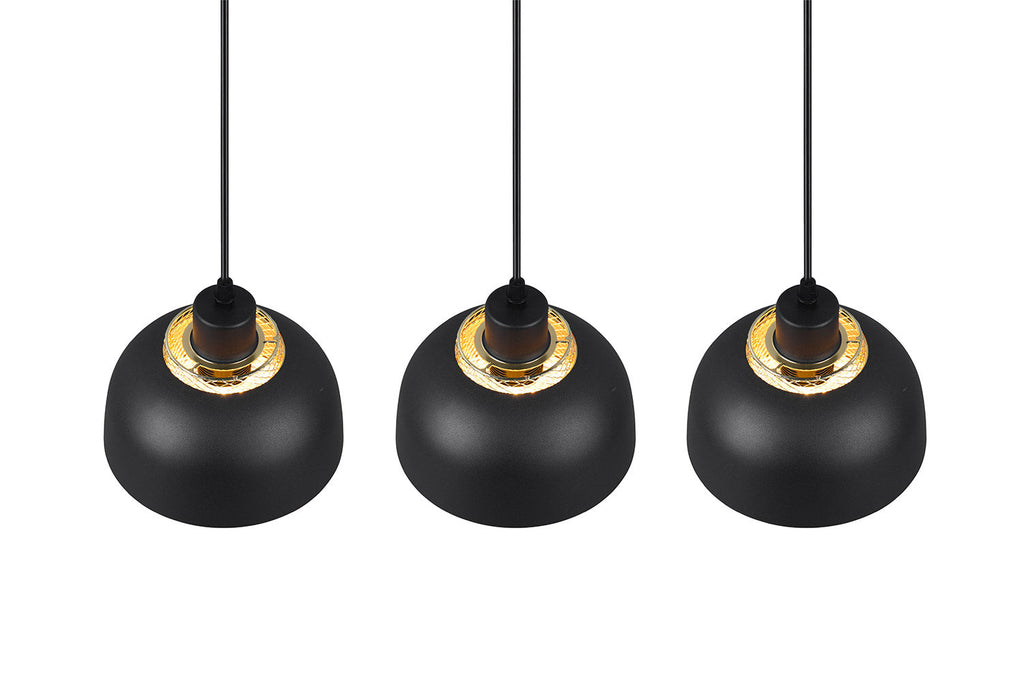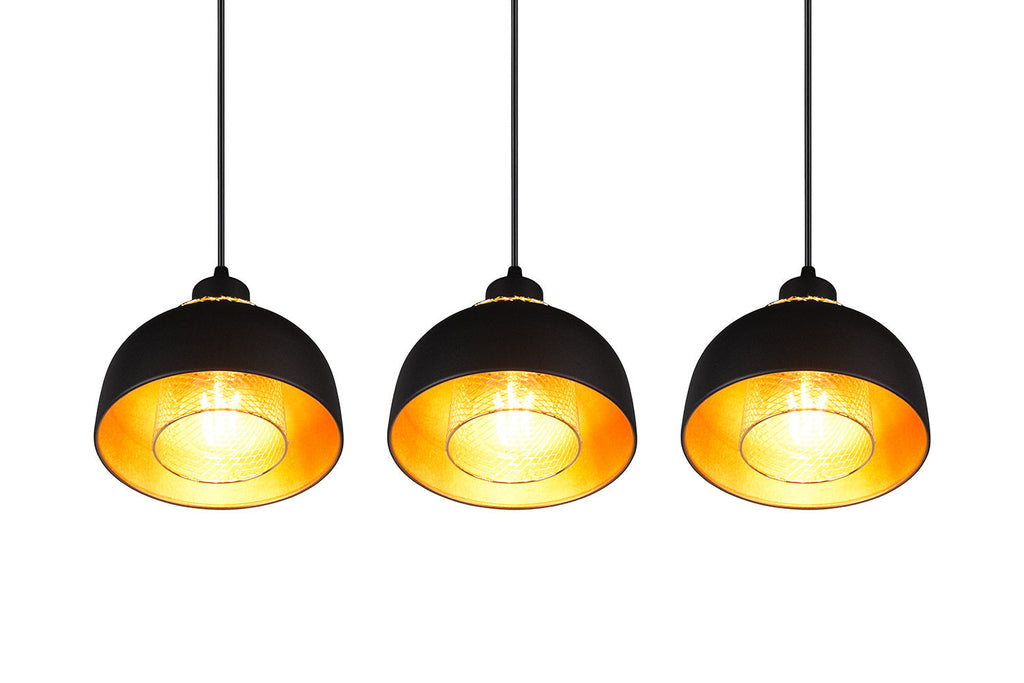 Punch Sospensione 3 Diffusori in Metallo Nero e Oro L. 74Cm