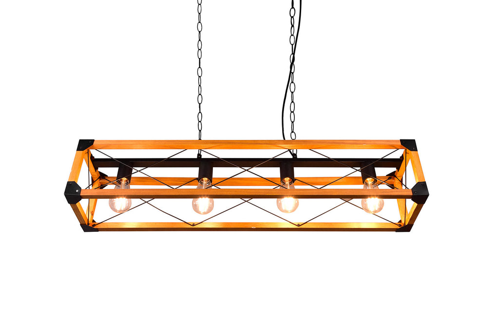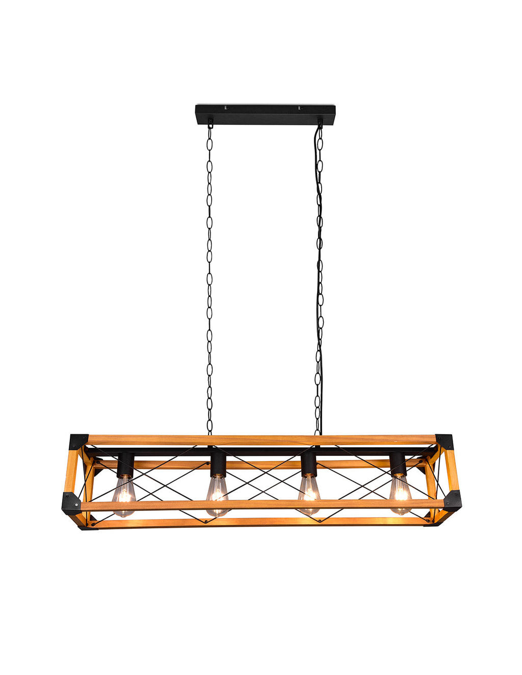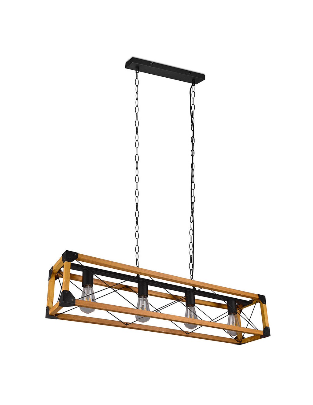 Tenali Sospensione Legno Naturale e Metallo Nero 4 Luci L. 100Cm