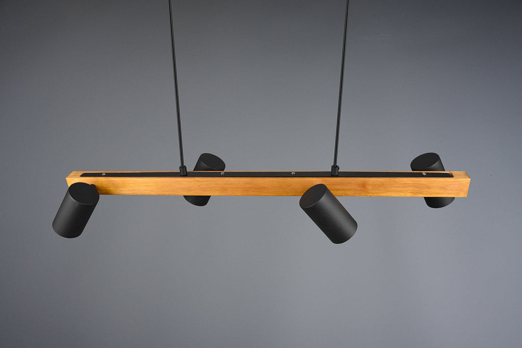 Marley Sospensione Rettangolare con Barra Legno 4 Cilindri Nero Opaco L. 80Cm