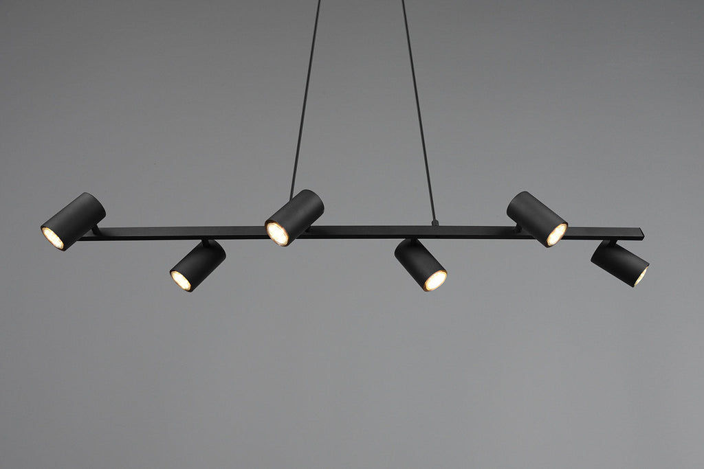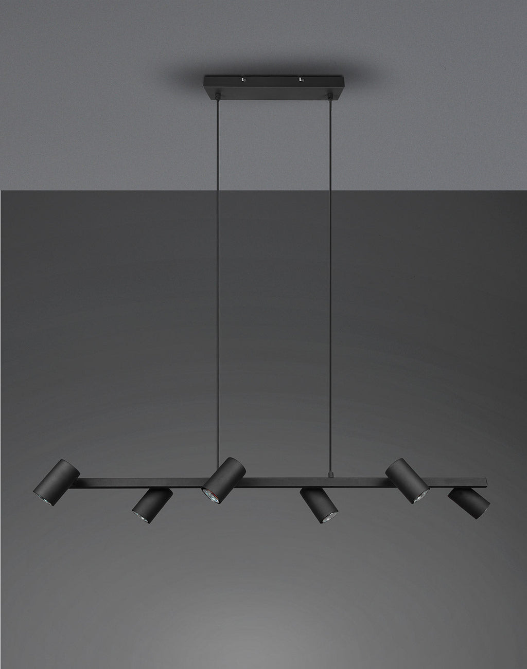 Marley Sospensione Rettangolare Nero Opaco con Barra 6 Cilindri L. 115Cm